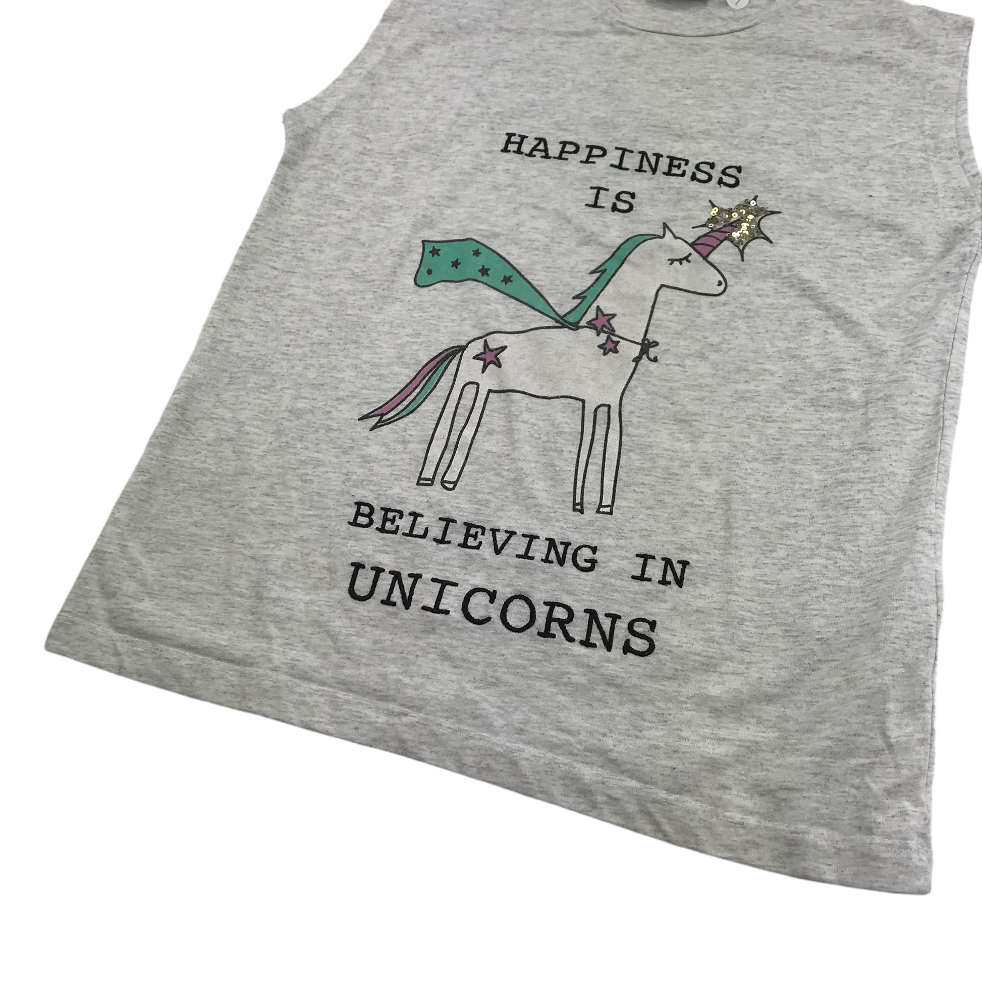 Preloved second hand Next Grey Oversized Unicorn Sleeveless T-shirt Age 9