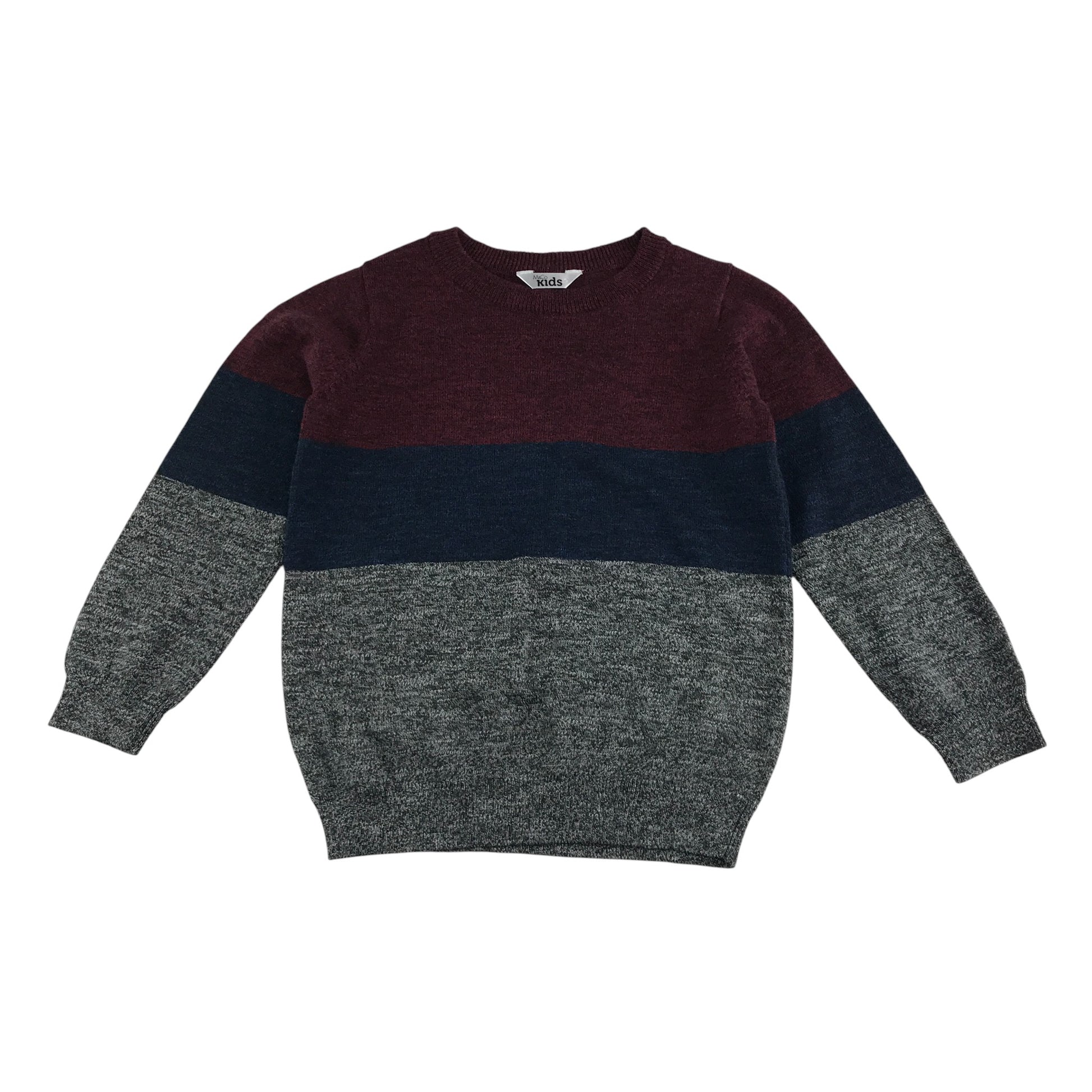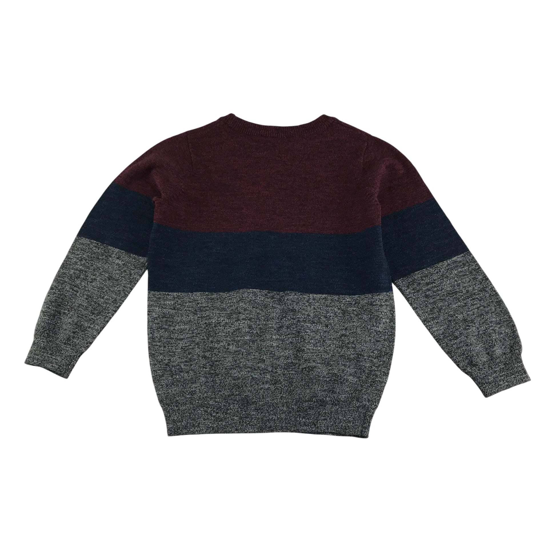M&Co Jumper 5-6 years burgundy navy and grey stripy block colour design