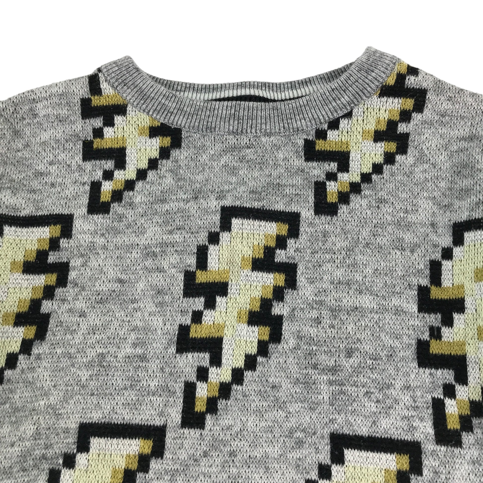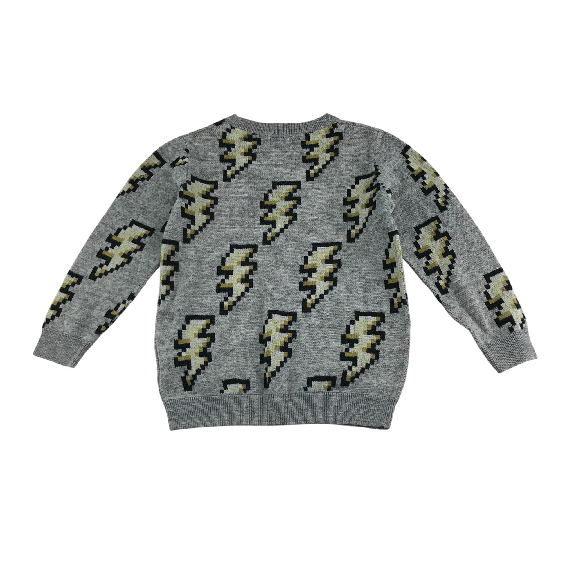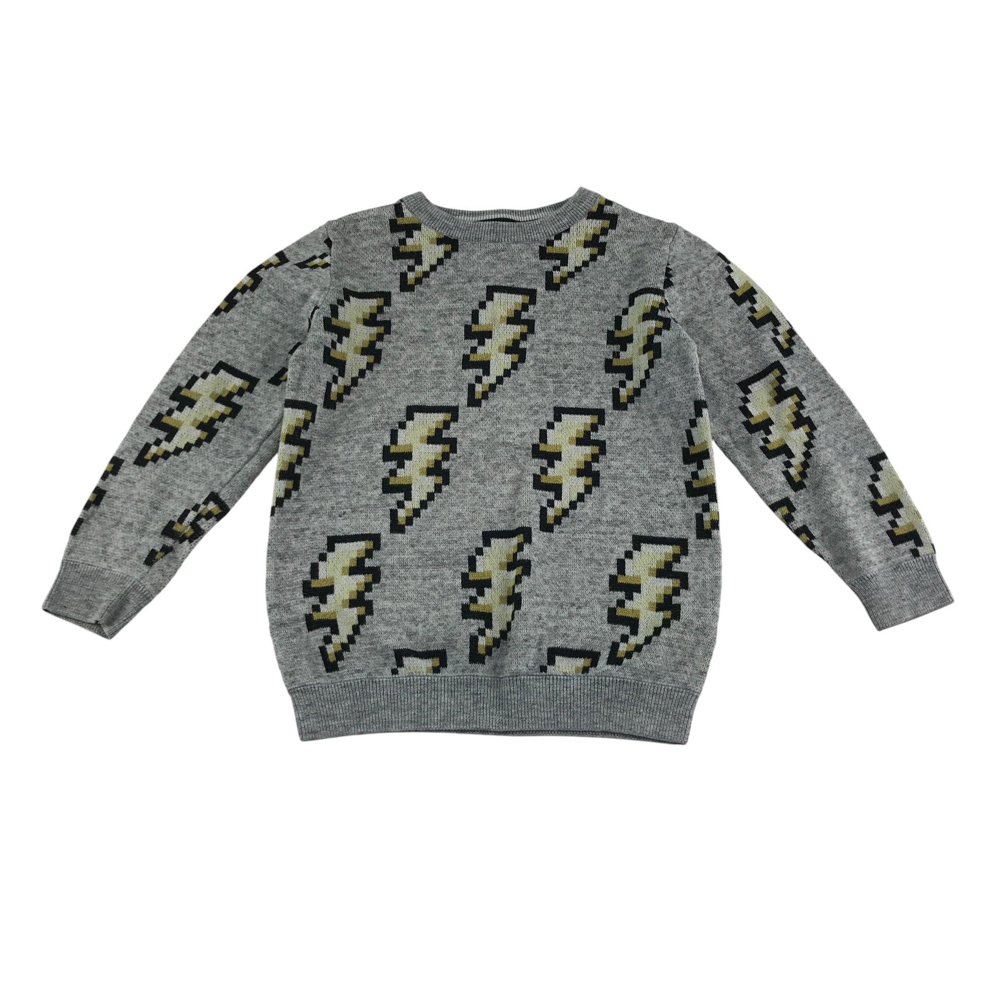 Next Jumper 5-6 years grey with lighting strike graphic design