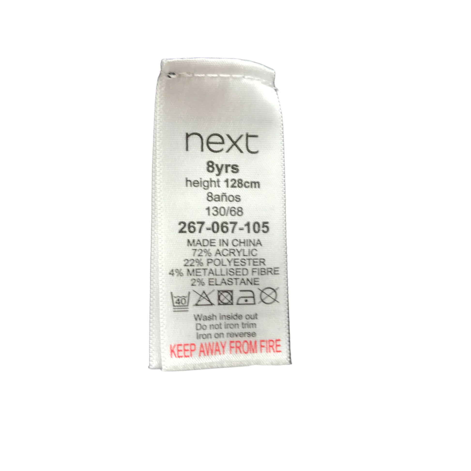 - Materials: 72% acrylic, 22% polyester, 4% metallised fibres, 2% elastane