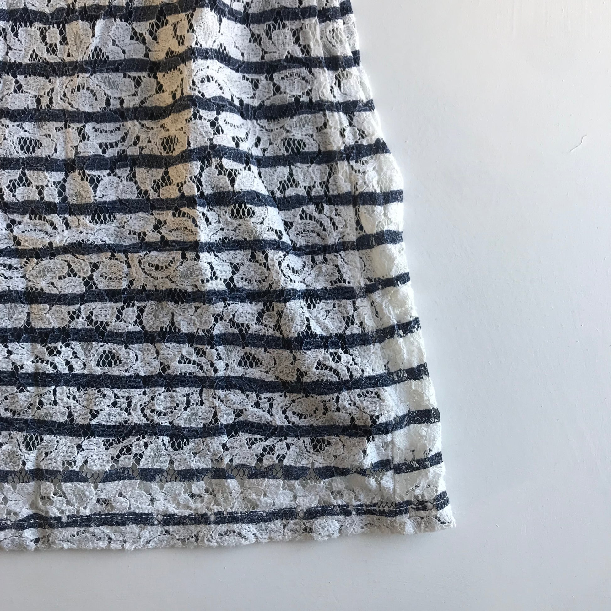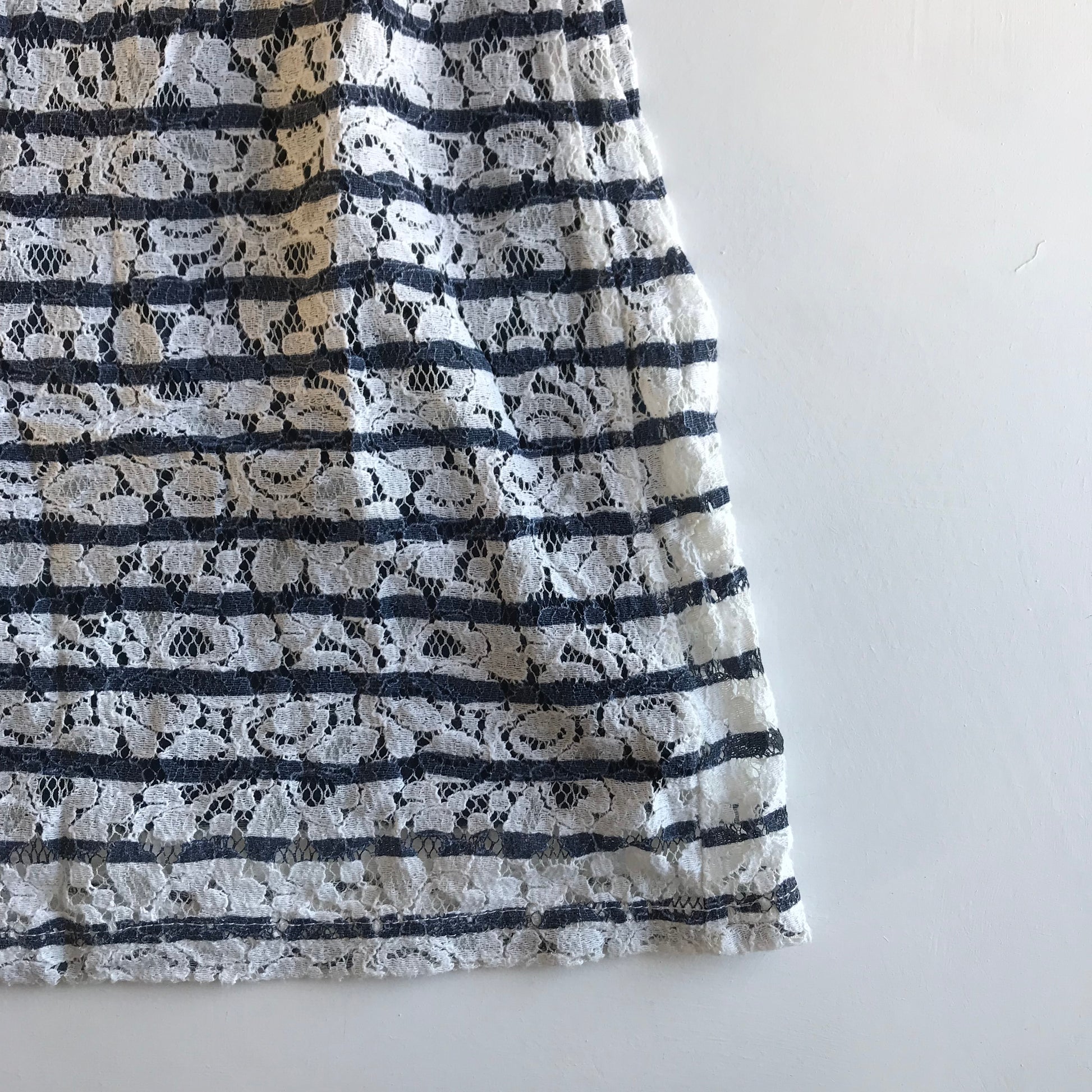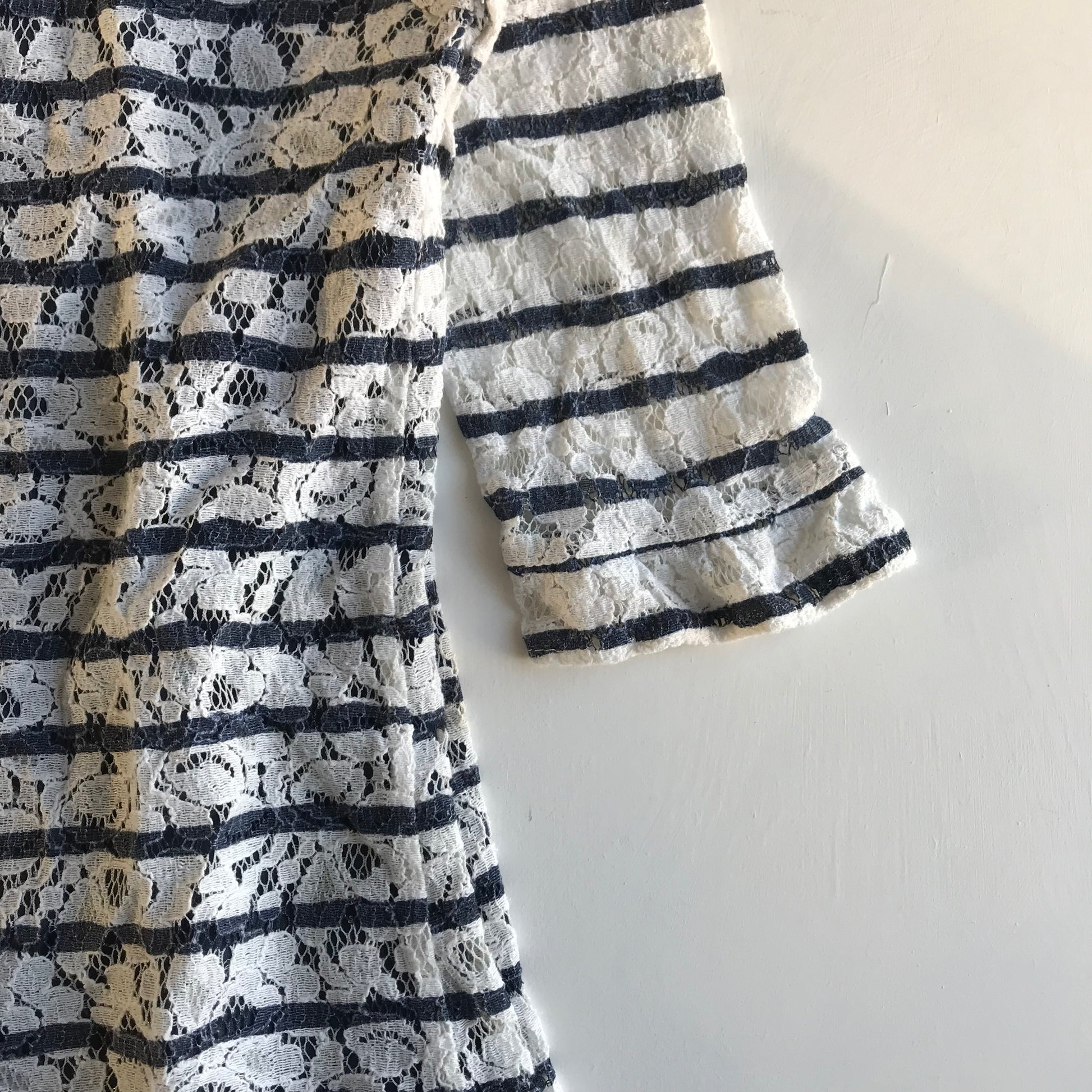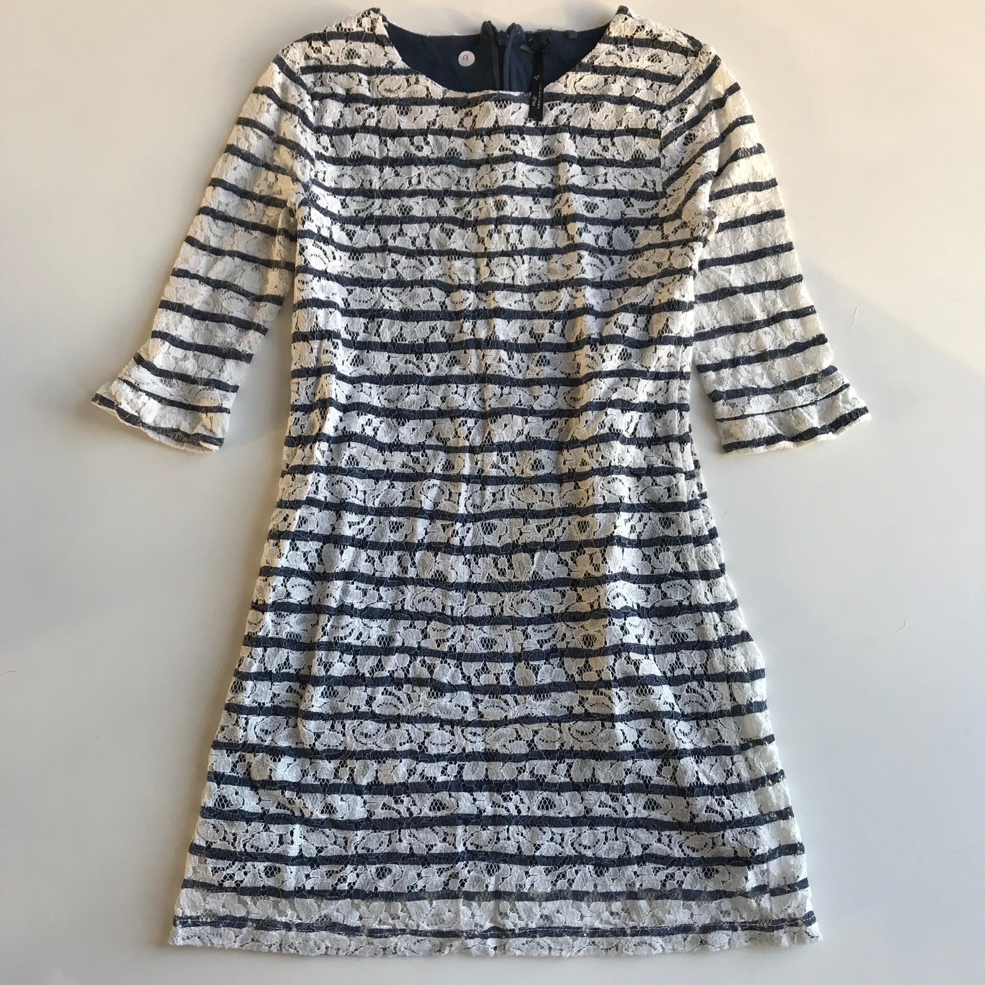 Preloved second hand white and navy blue NEXT lace dress with 3/4 sleeves