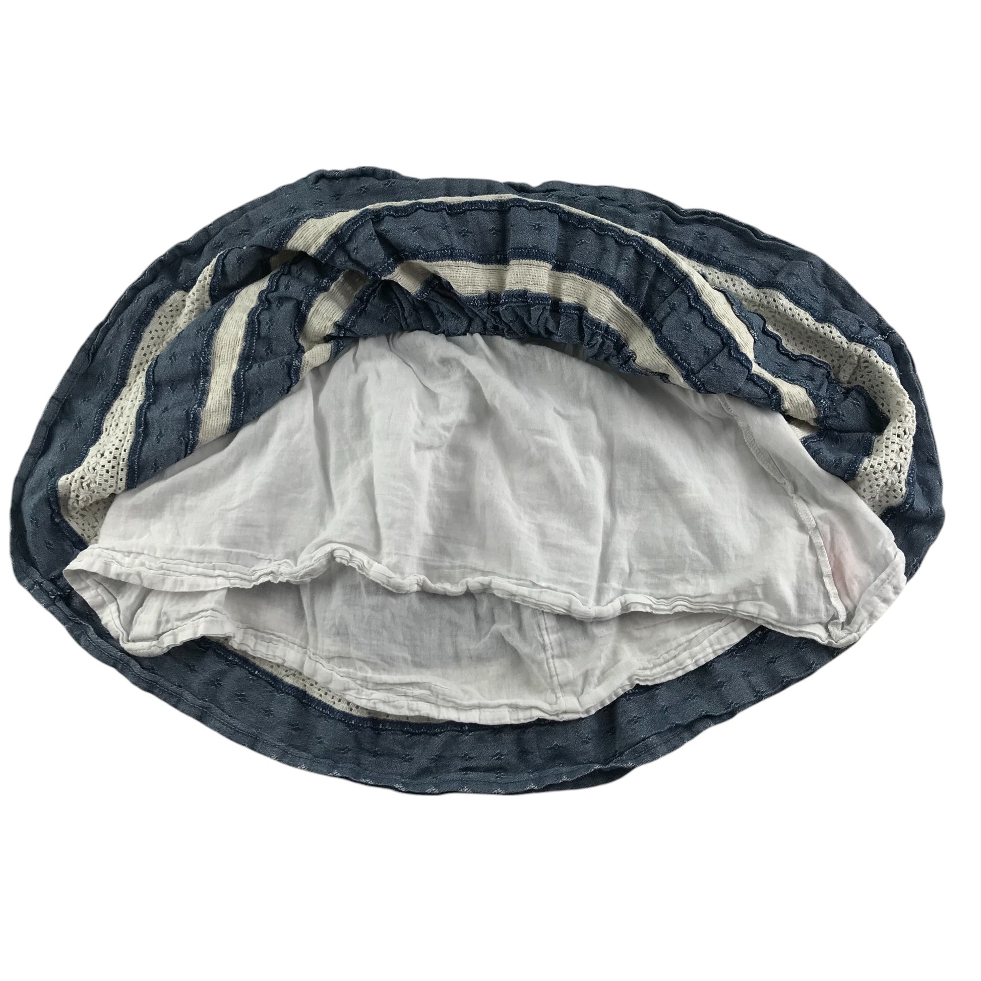 Preloved second hand Monsoon skirt 5-6 year blue and white striped with pattern detailing cotton