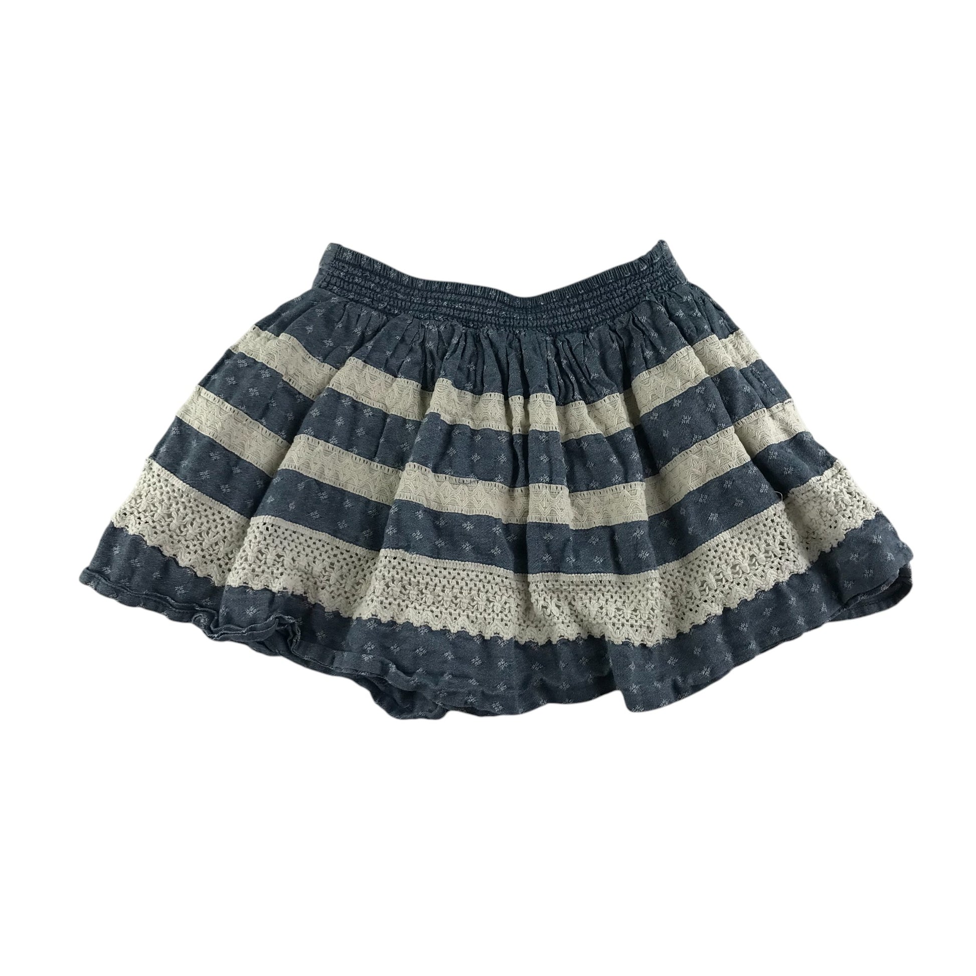 Monsoon skirt 5-6 year blue and white striped with pattern detailing cotton