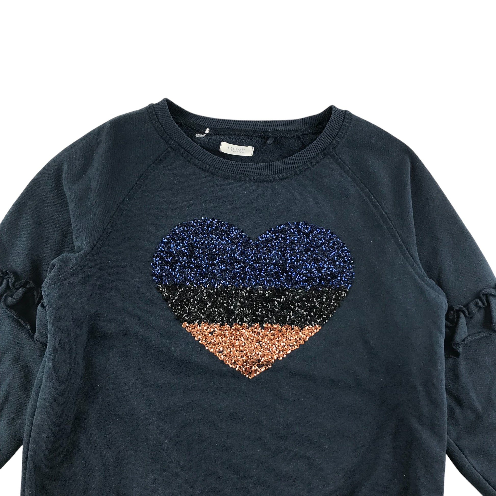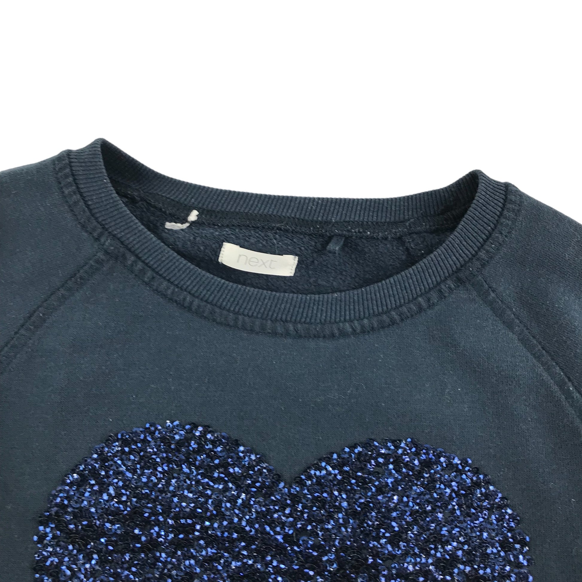 Next Sweater Age 9 Navy Blue Sequin Love Heart Jersey