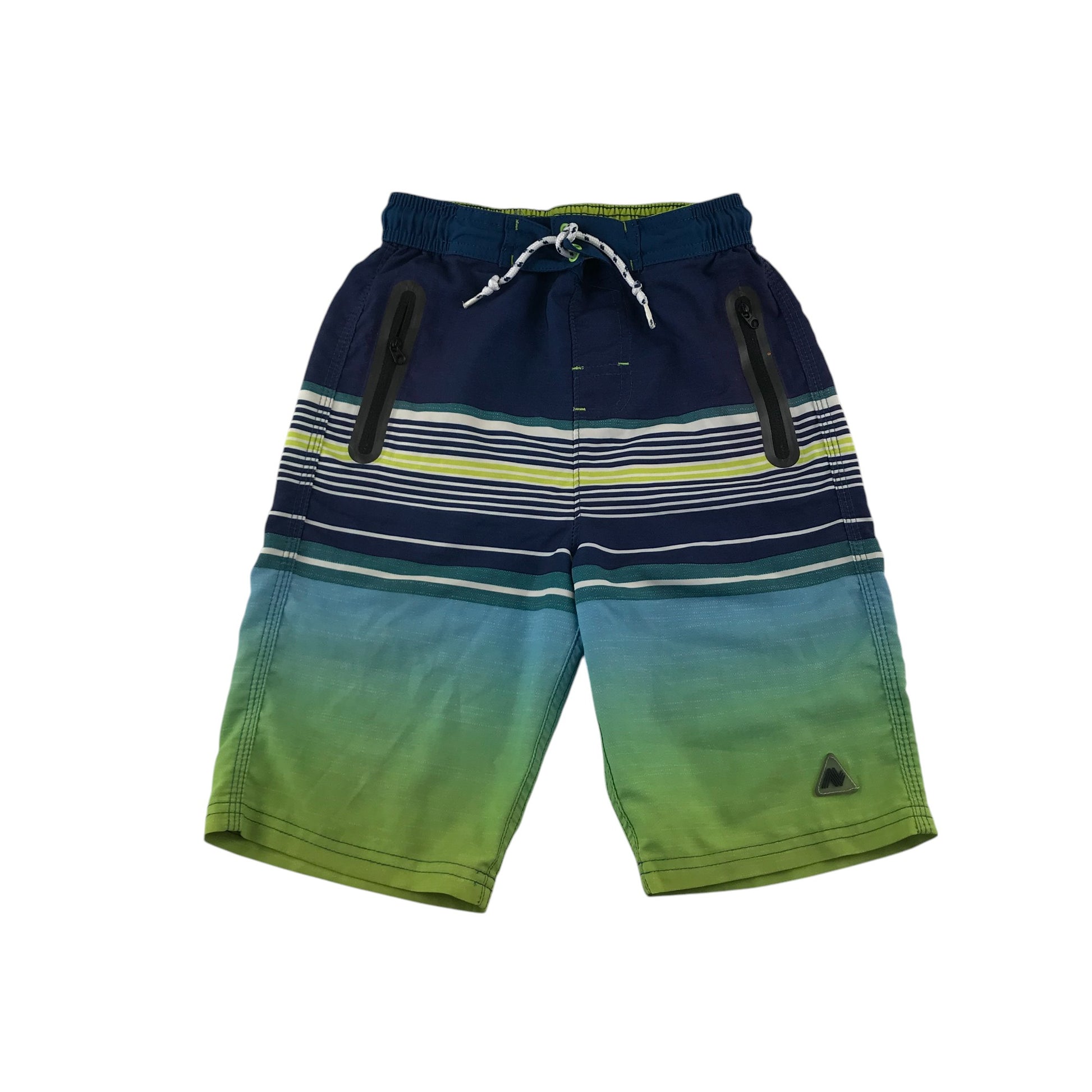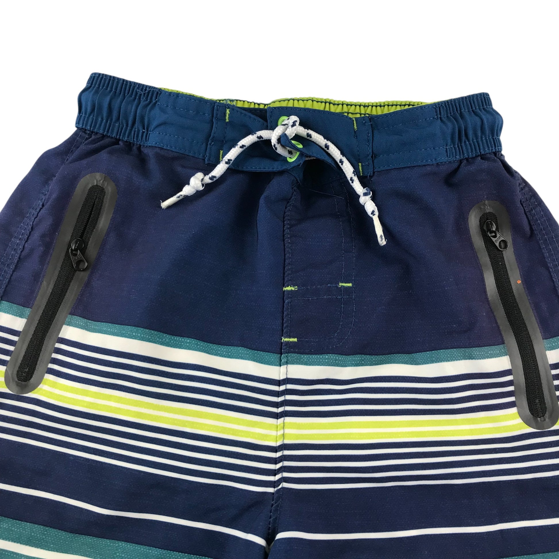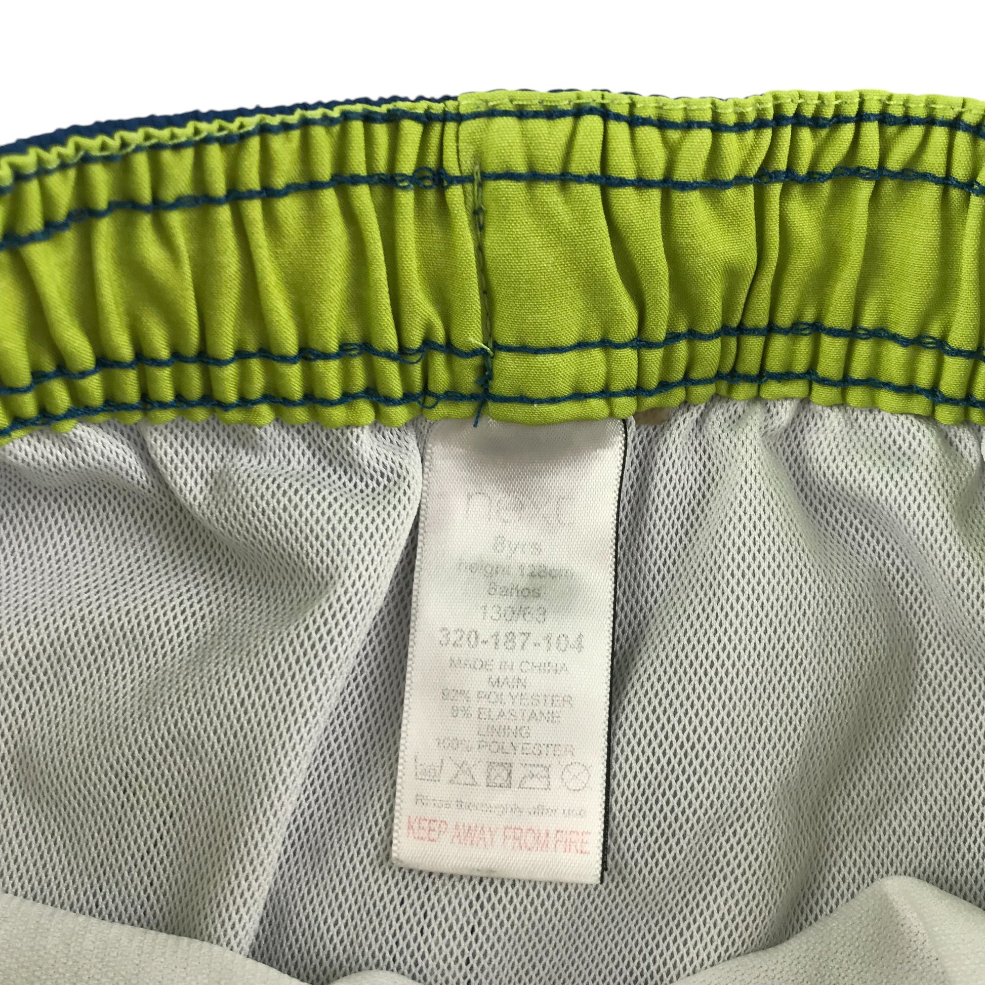 Next swim trunks 7-8 years navy and green stripy pattern shorts