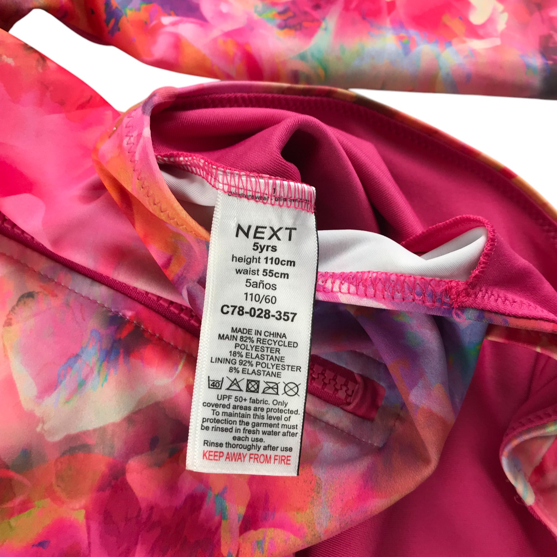 Next swimsuit 4-5 years pink graphic long sleeve one-piece cossie