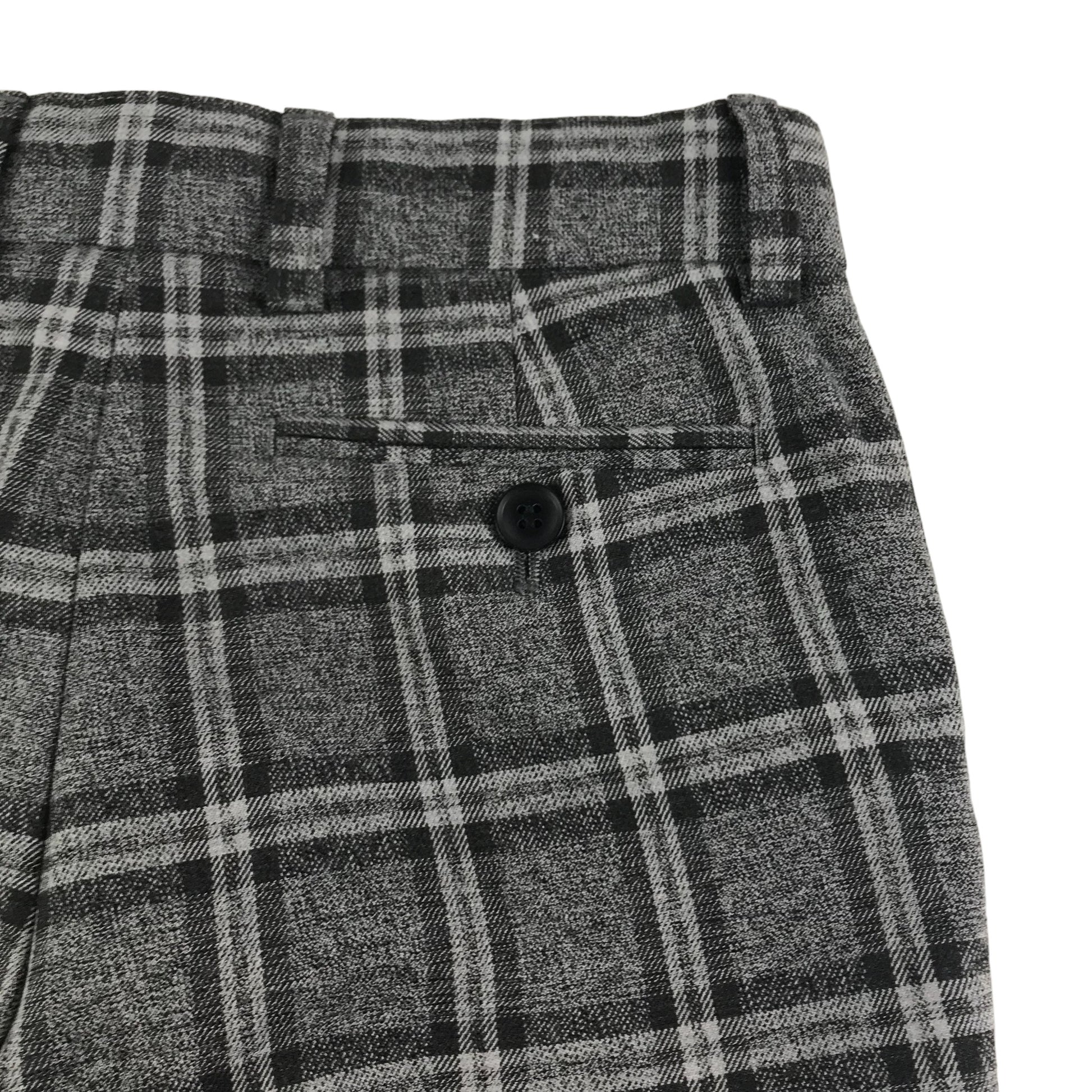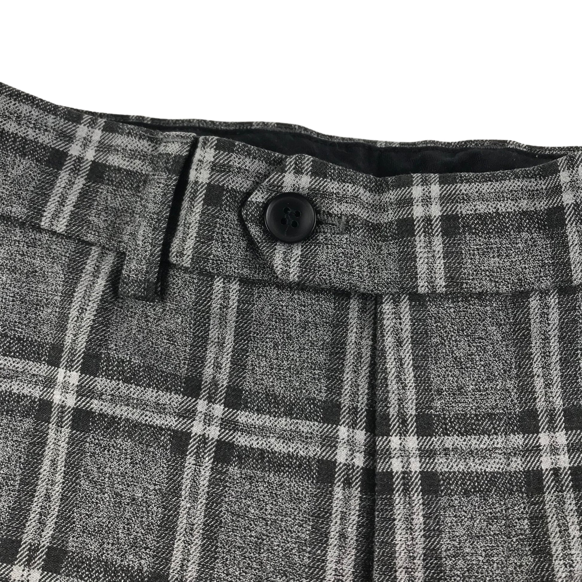 - Description: tailored check pattern trousers with zipper and button fastening, belt loops, pockets