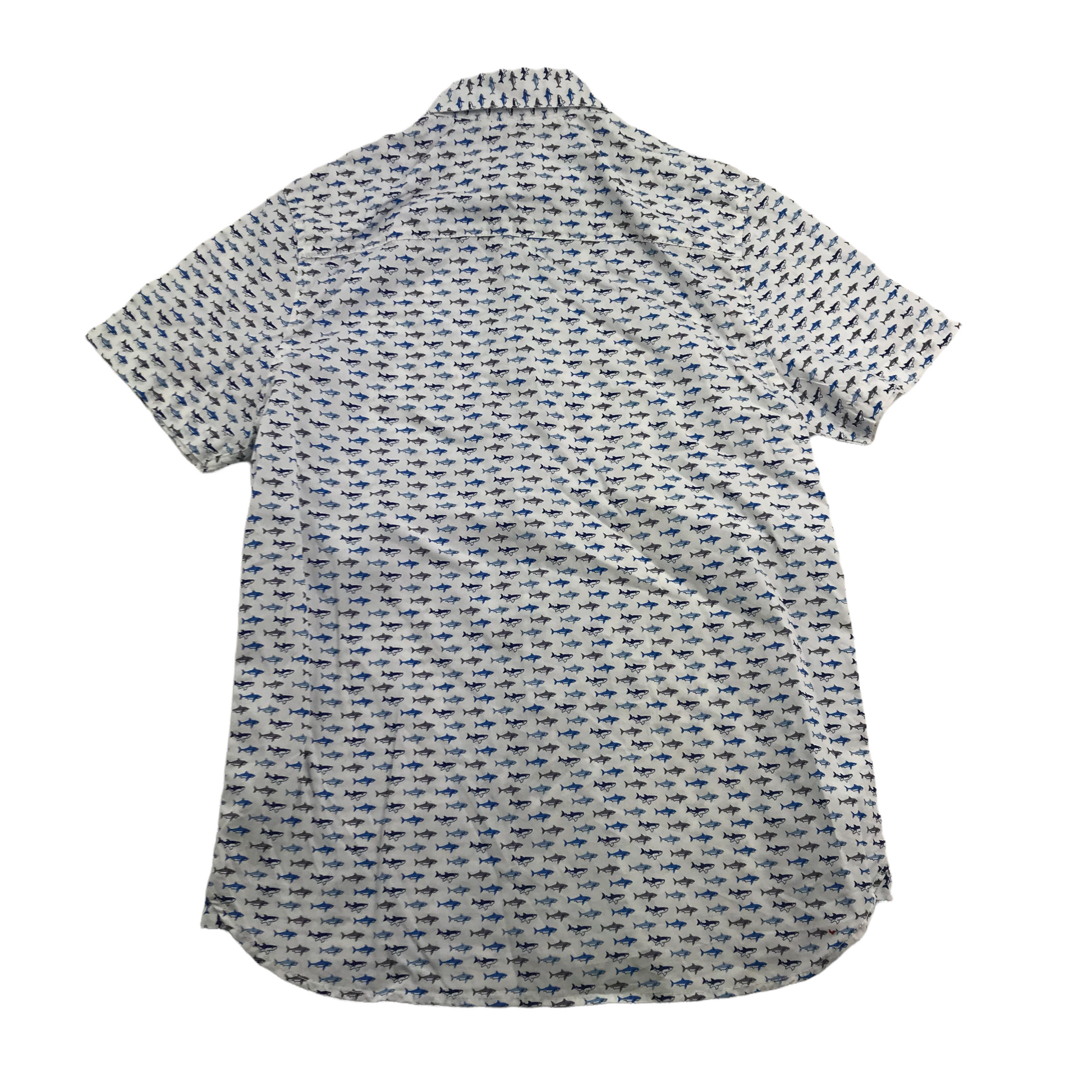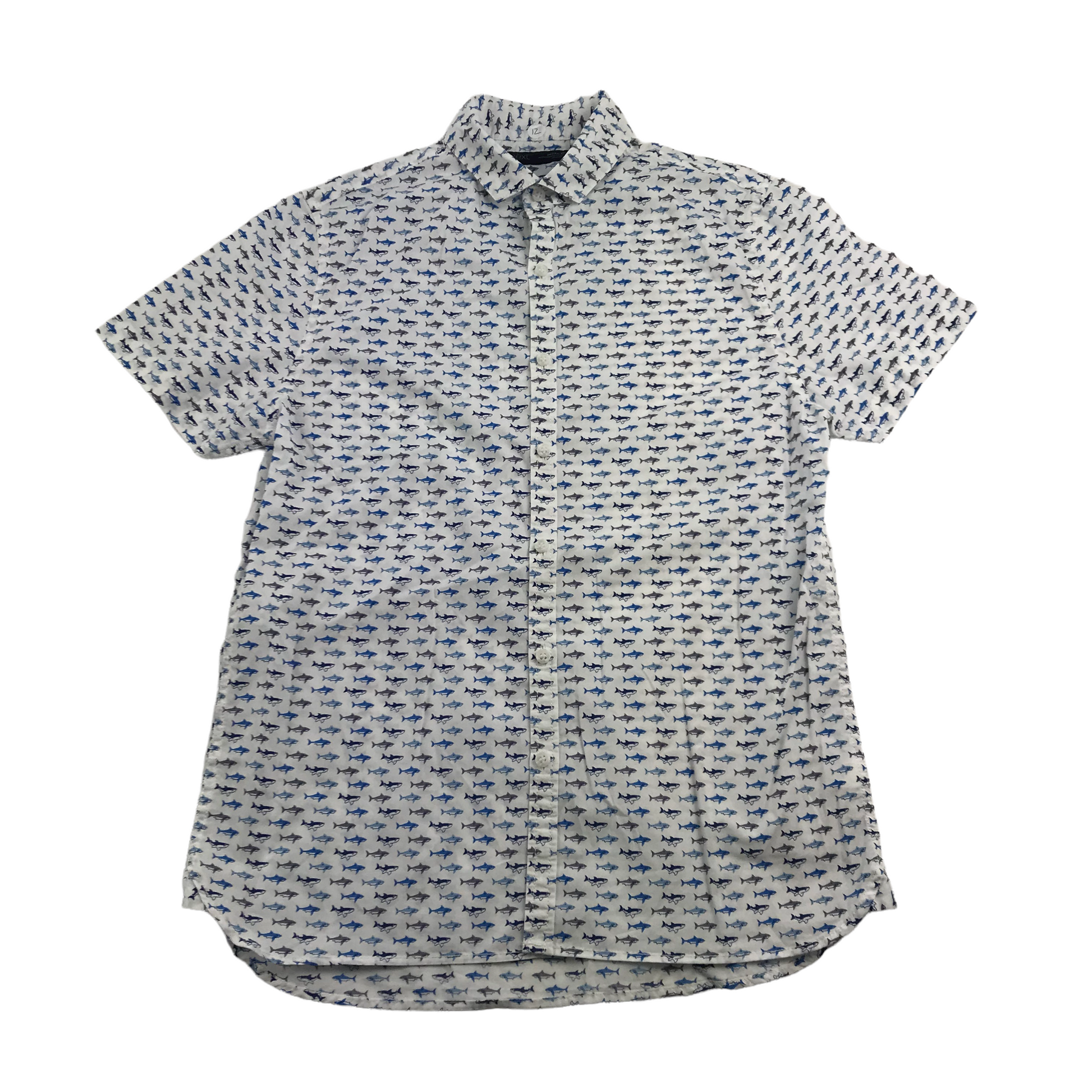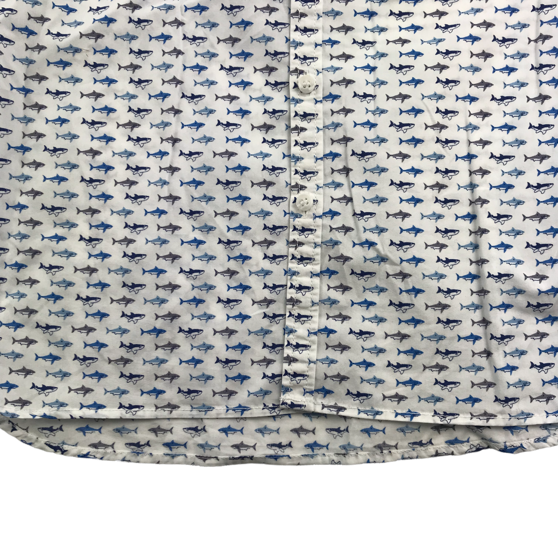Next White and Blue Fish Short Sleeve Shirt Age 12