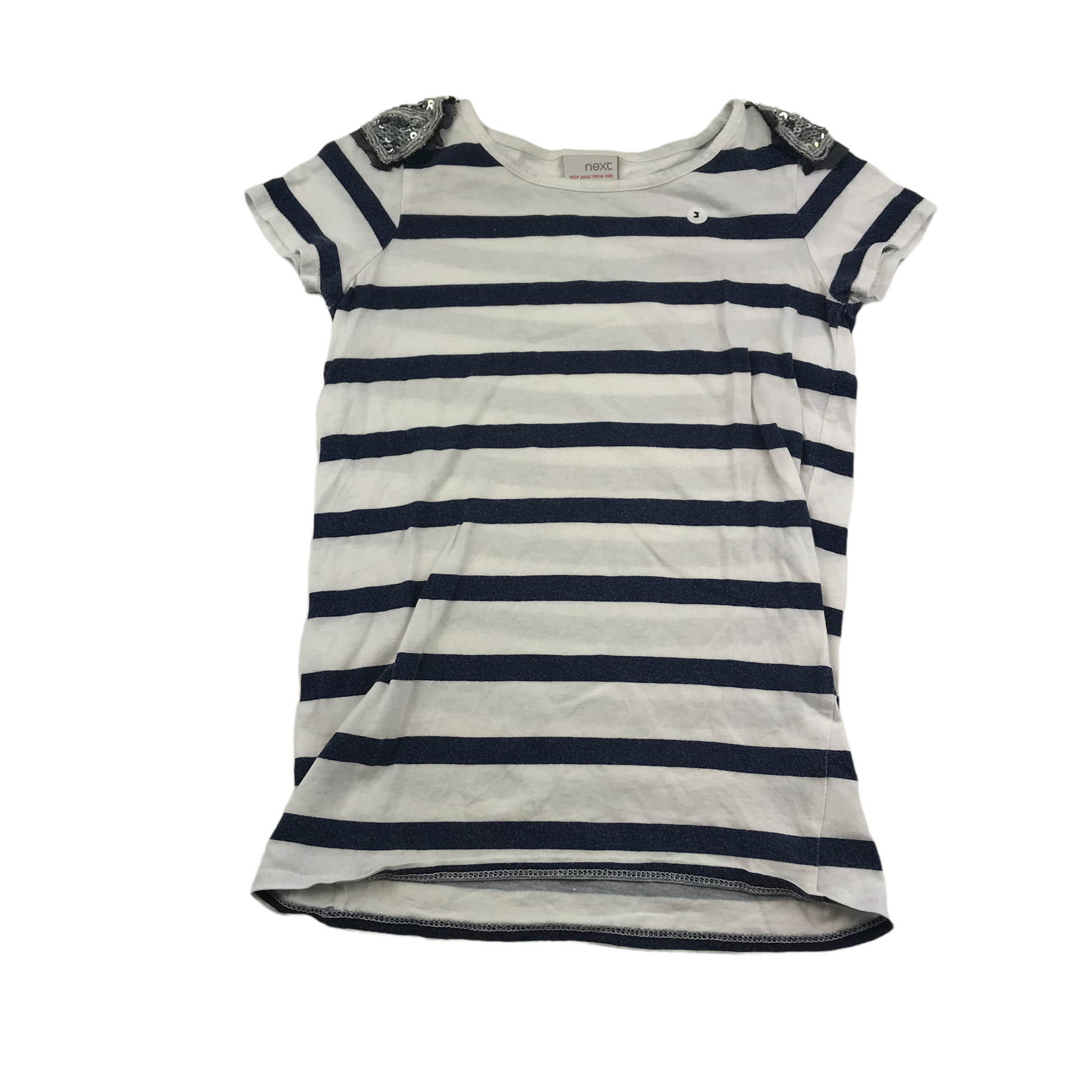 Preloved second hand Next White Stripy Sequin Shoulders T-shirt Age 5