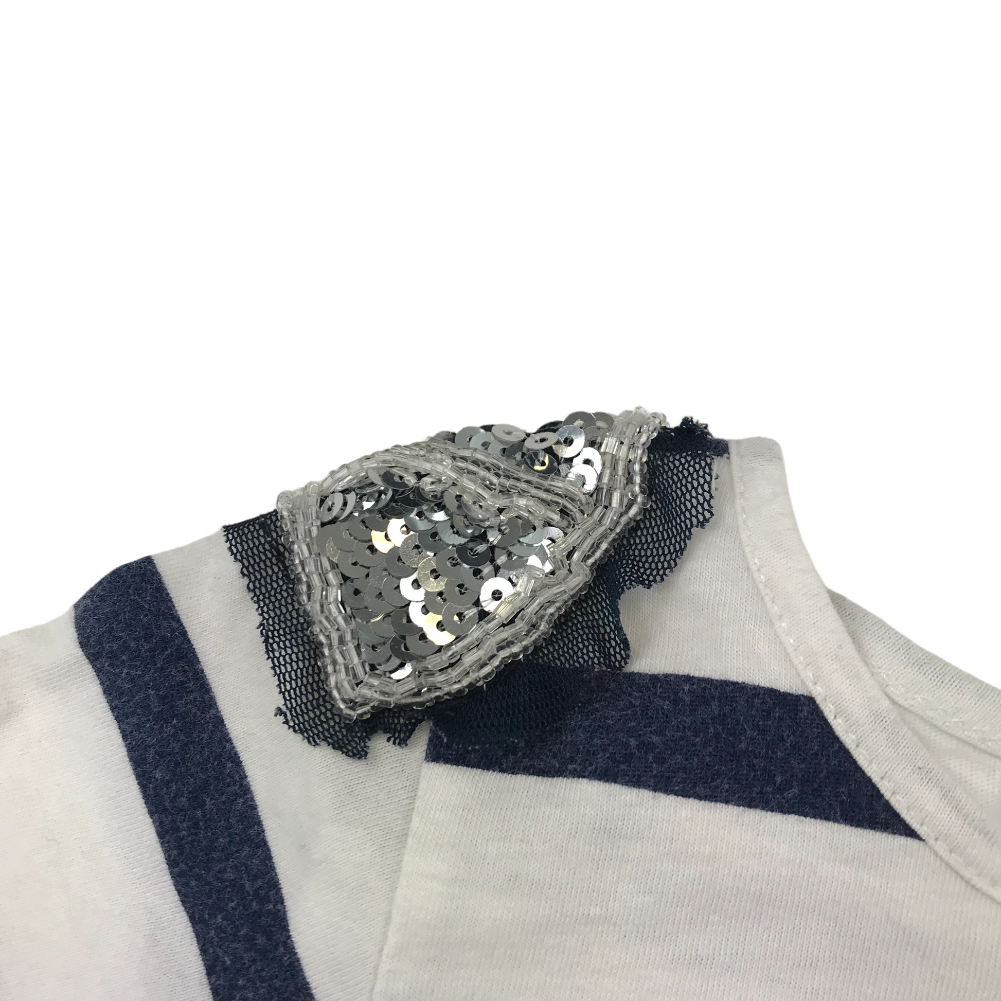 Next White Stripy Sequin Shoulders T-shirt Age 5