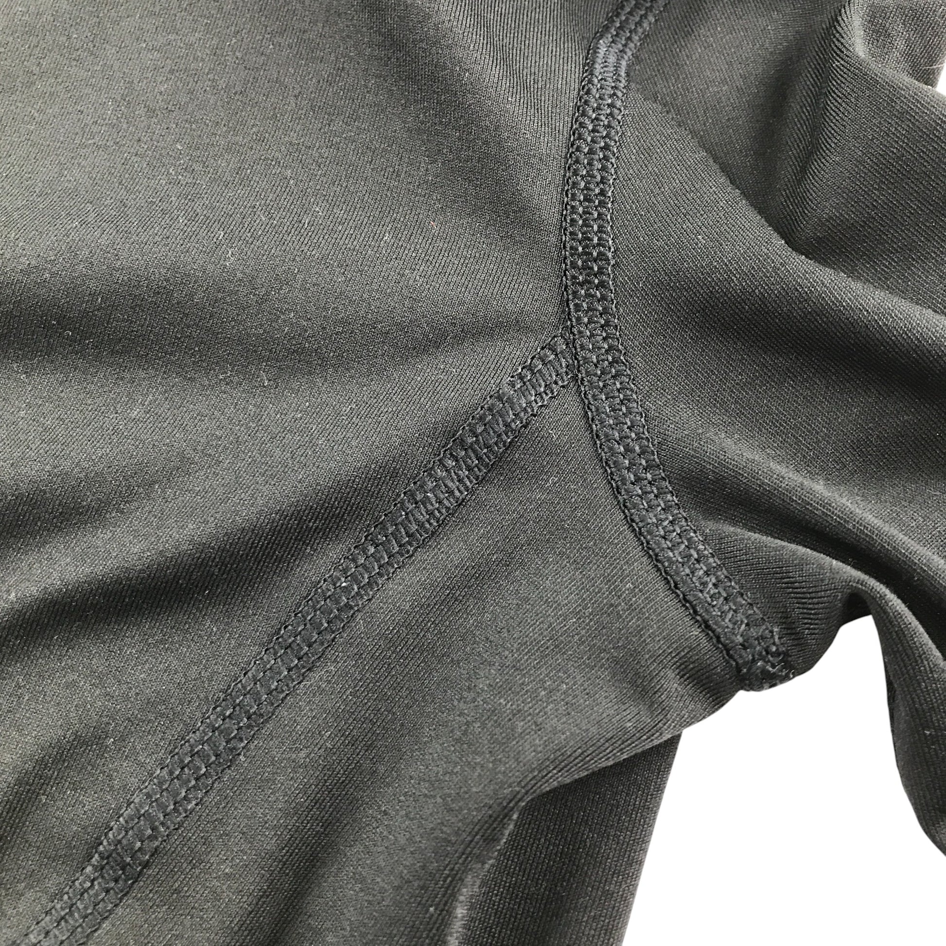 - Clothing features: Black mock neckline long sleeve logo and fleece lining