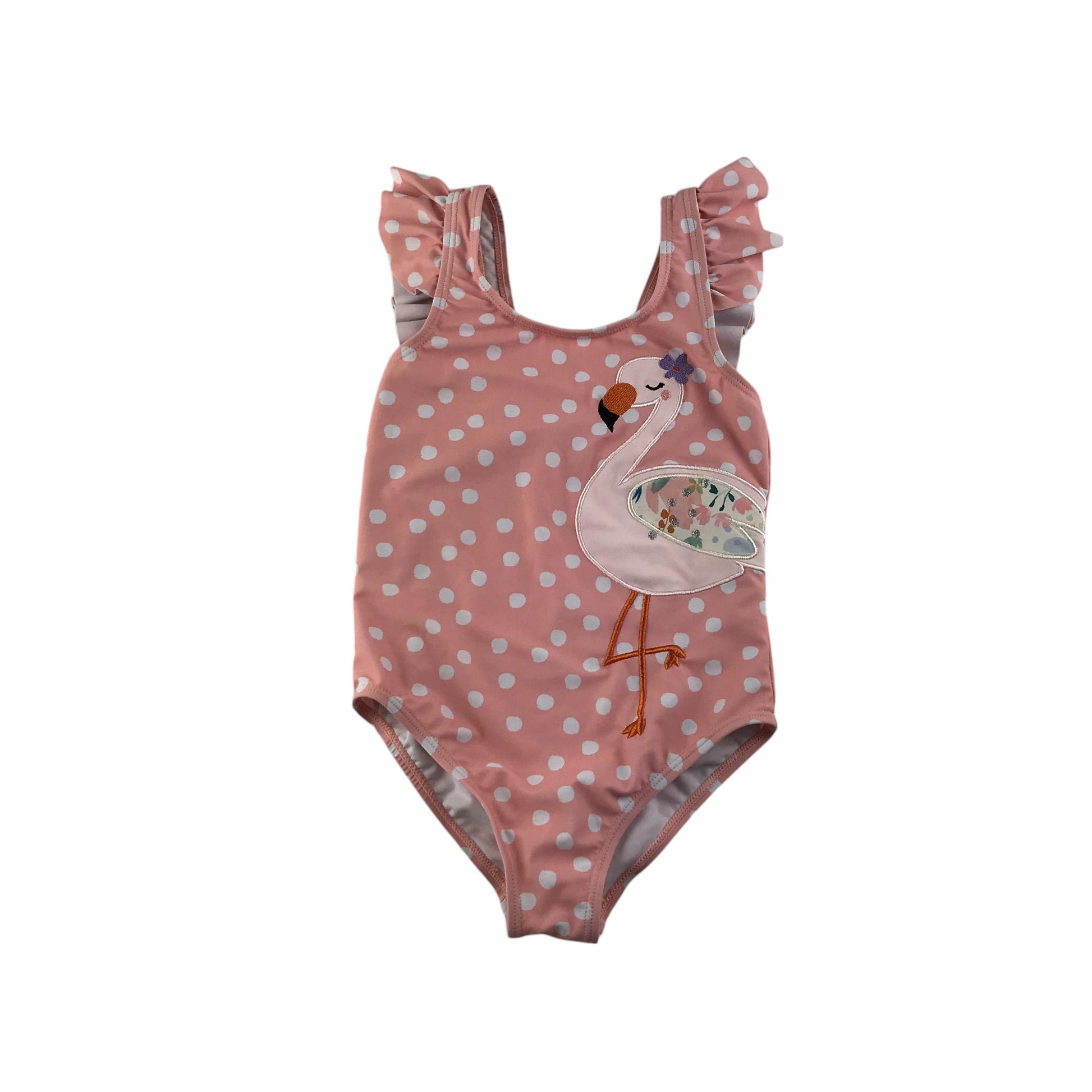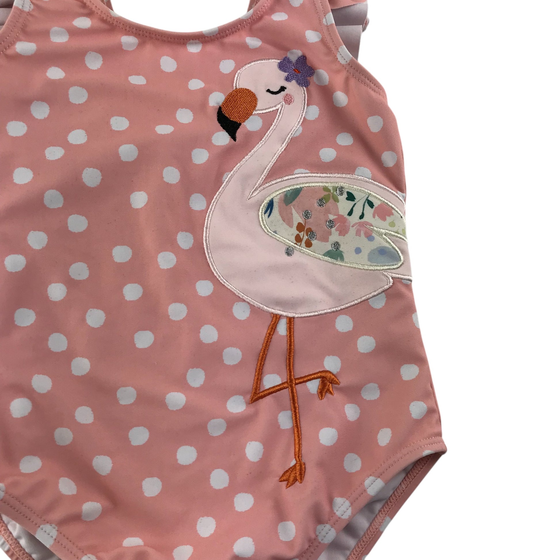 Nutmeg 5-6 years pink polka dot flamingo one-piece cossie