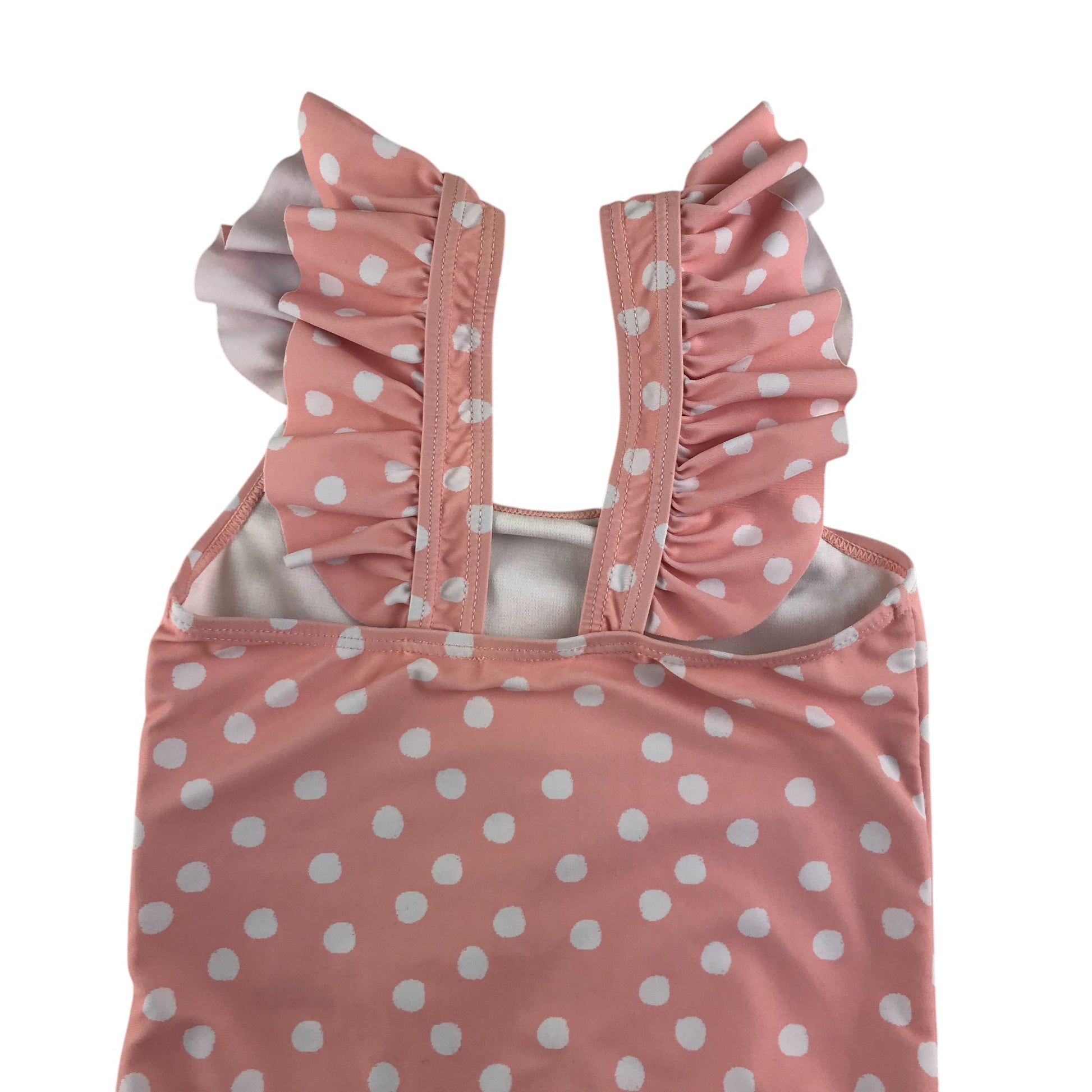 Preloved second hand Nutmeg 5-6 years pink polka dot flamingo one-piece cossie