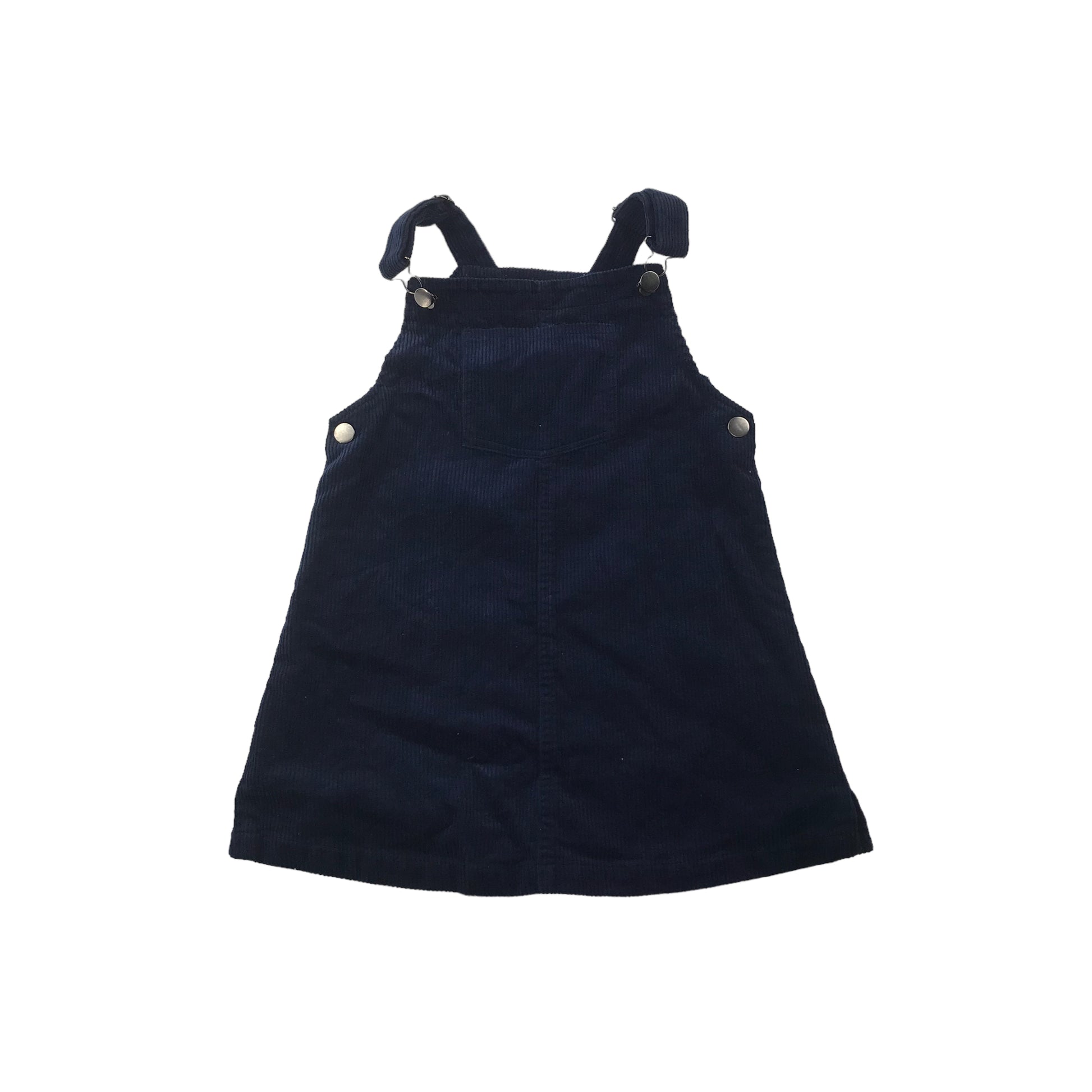 Preloved second hand Nutmeg Navy Blue Corduroy Dungaree Dress Age 8