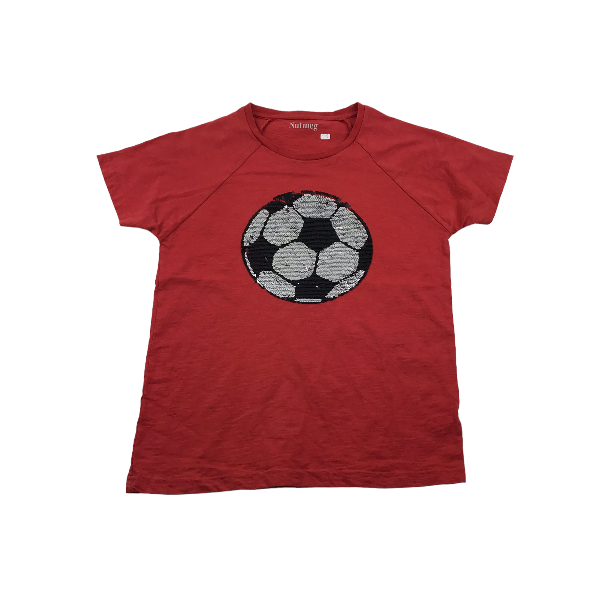 Preloved second hand Nutmeg Red Flip Sequin Football T-shirt Age 11