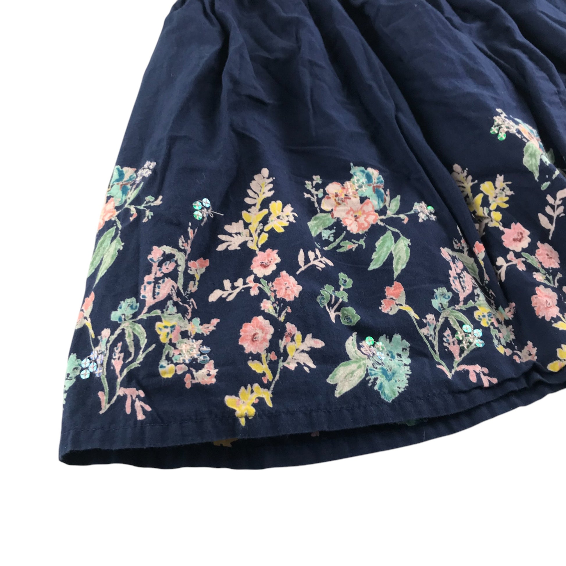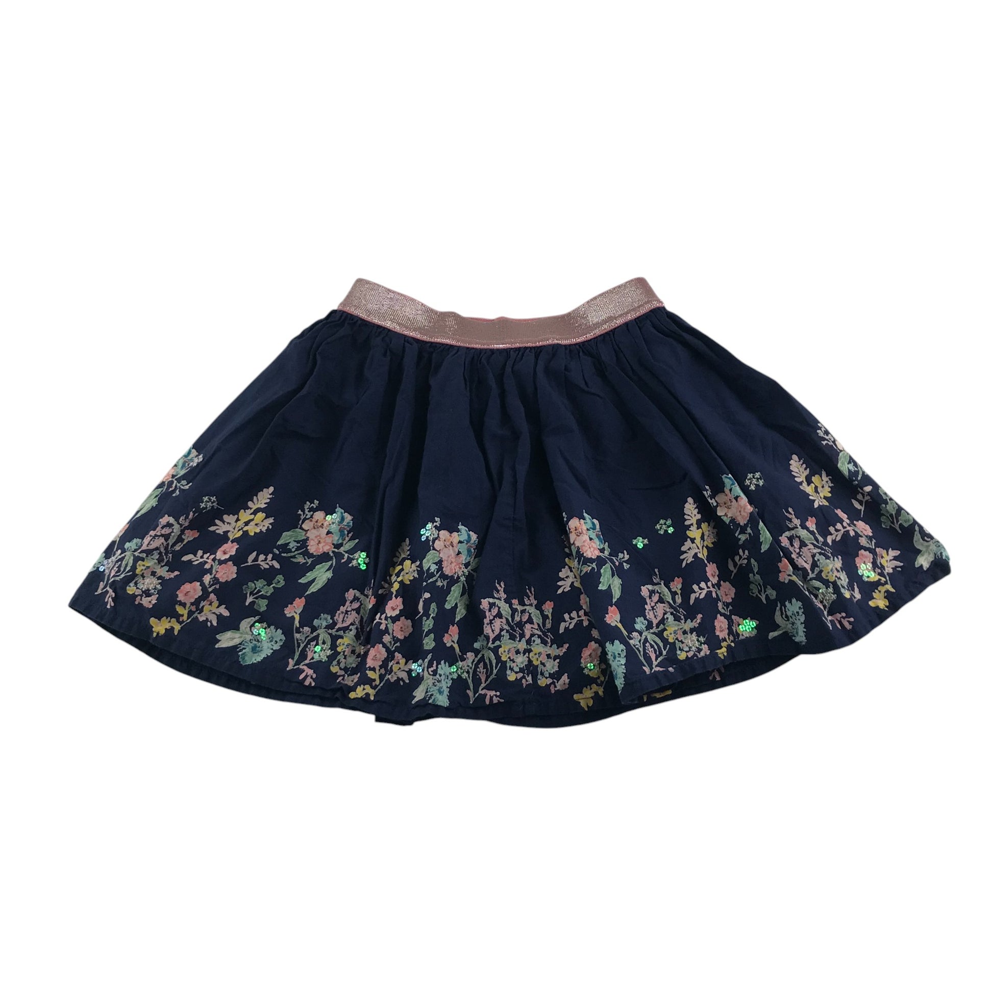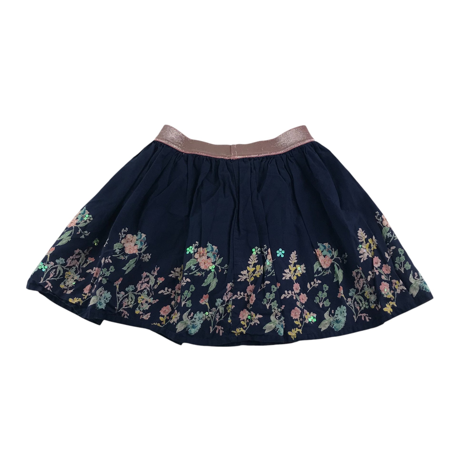 Preloved second-hand Nutmeg skirt 5-6 years navy blue floral rim cotton
