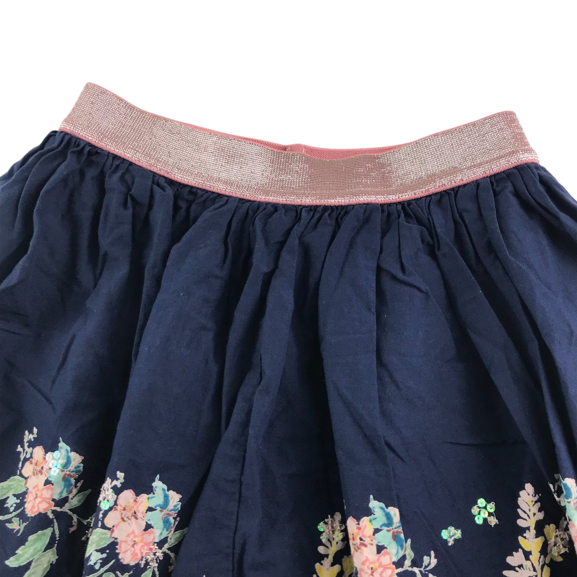 Nutmeg skirt 5-6 years navy blue floral rim cotton