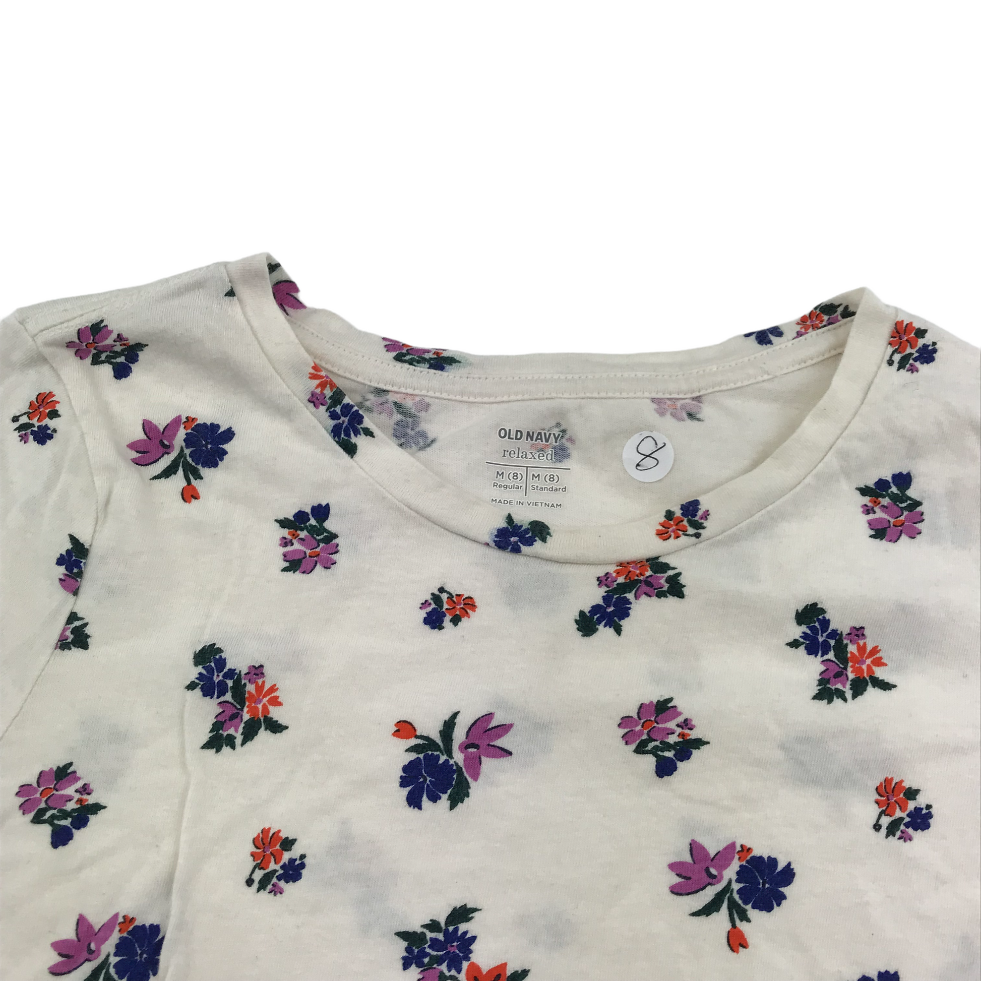 Preloved second hand Old Navy White Floral T-shirt Age 8