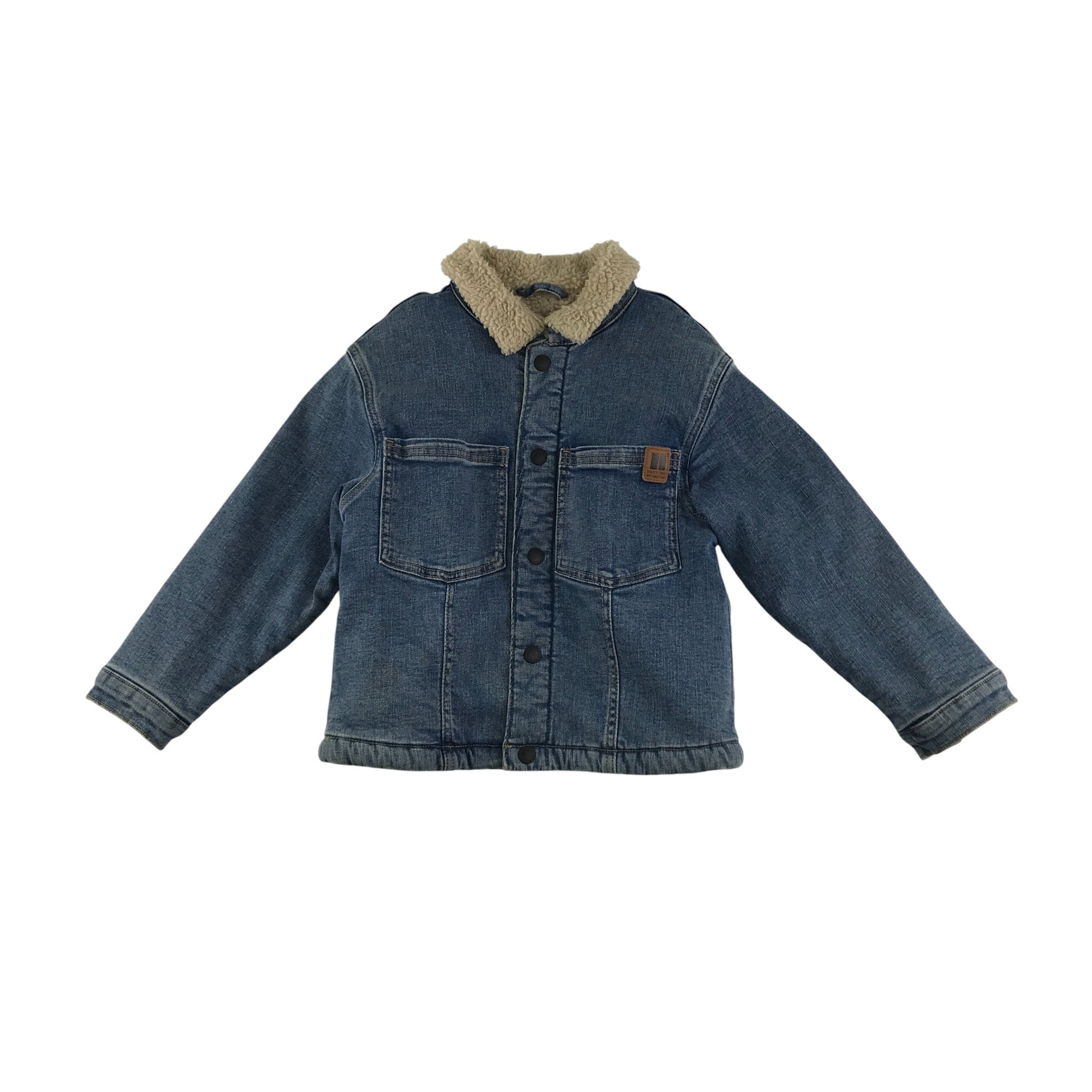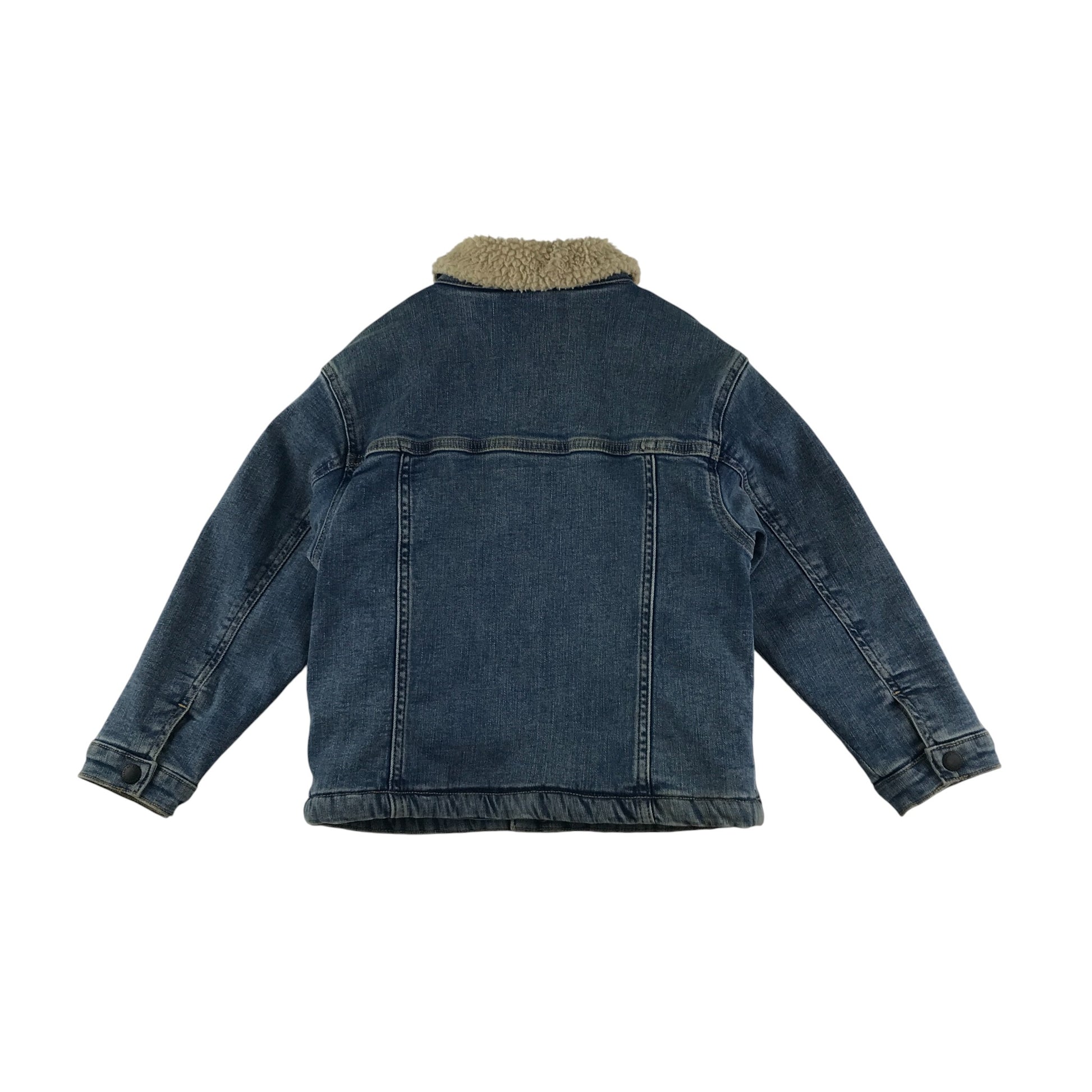 Preloved second hand Next denim jacket 5-6 years light blue button up faux fur collar and interior