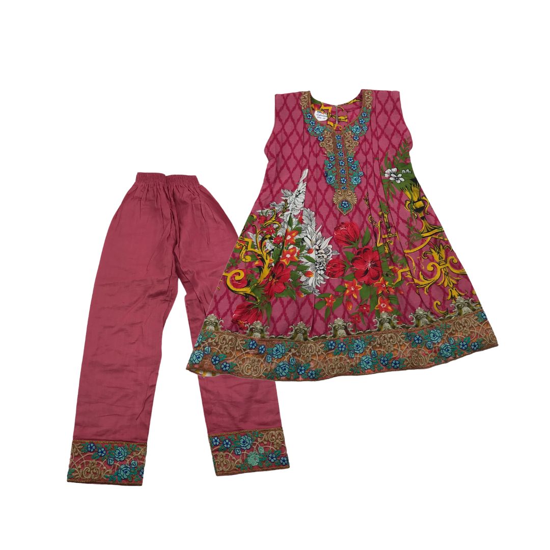 Preloved second hand Pink Embroidery and Pattern Print Tunic Dress and Trousers Age 4