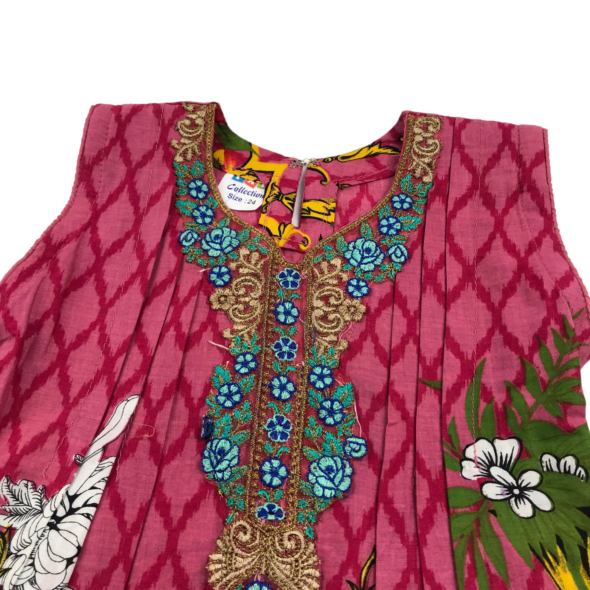 Pink Embroidery and Pattern Print Tunic Dress and Trousers Age 4