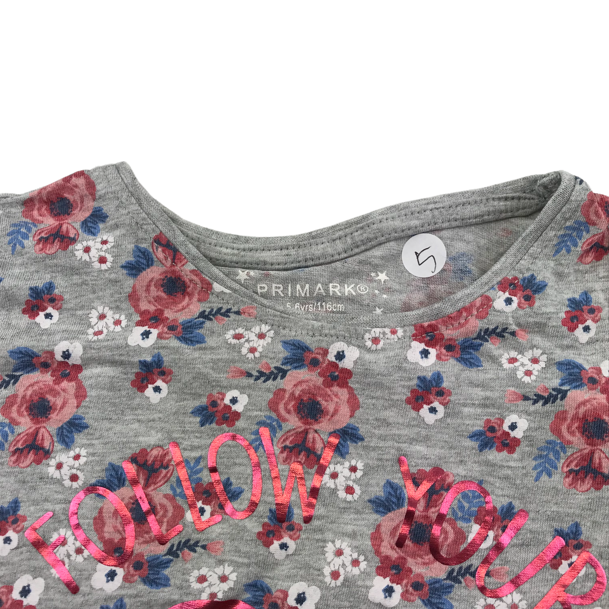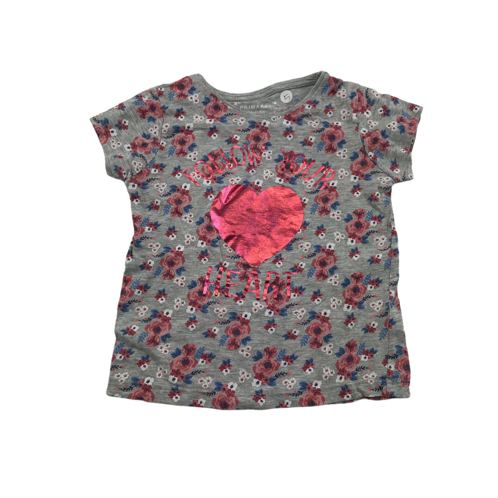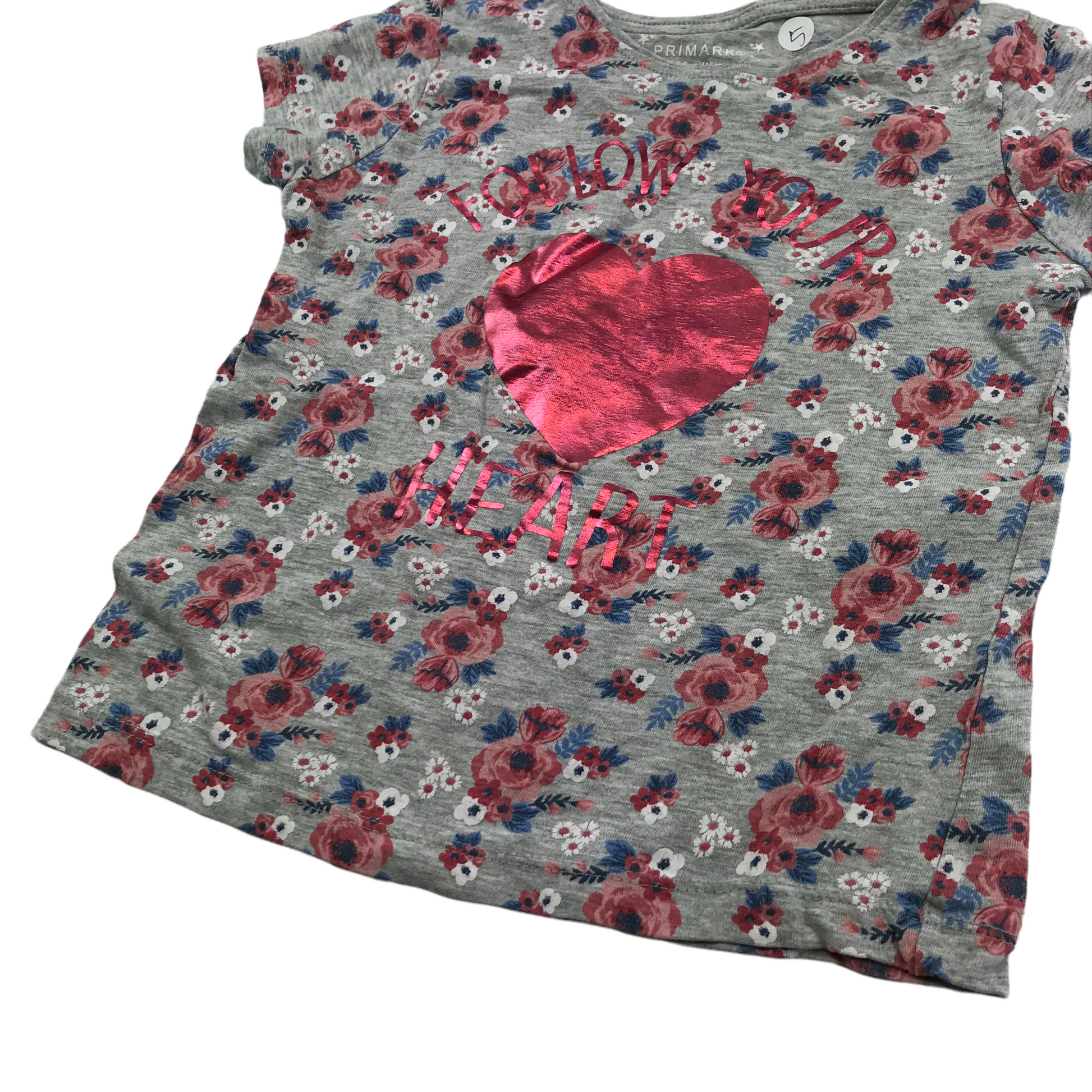 Preloved second hand Primark Grey Floral Love Heart T-shirt Age 5