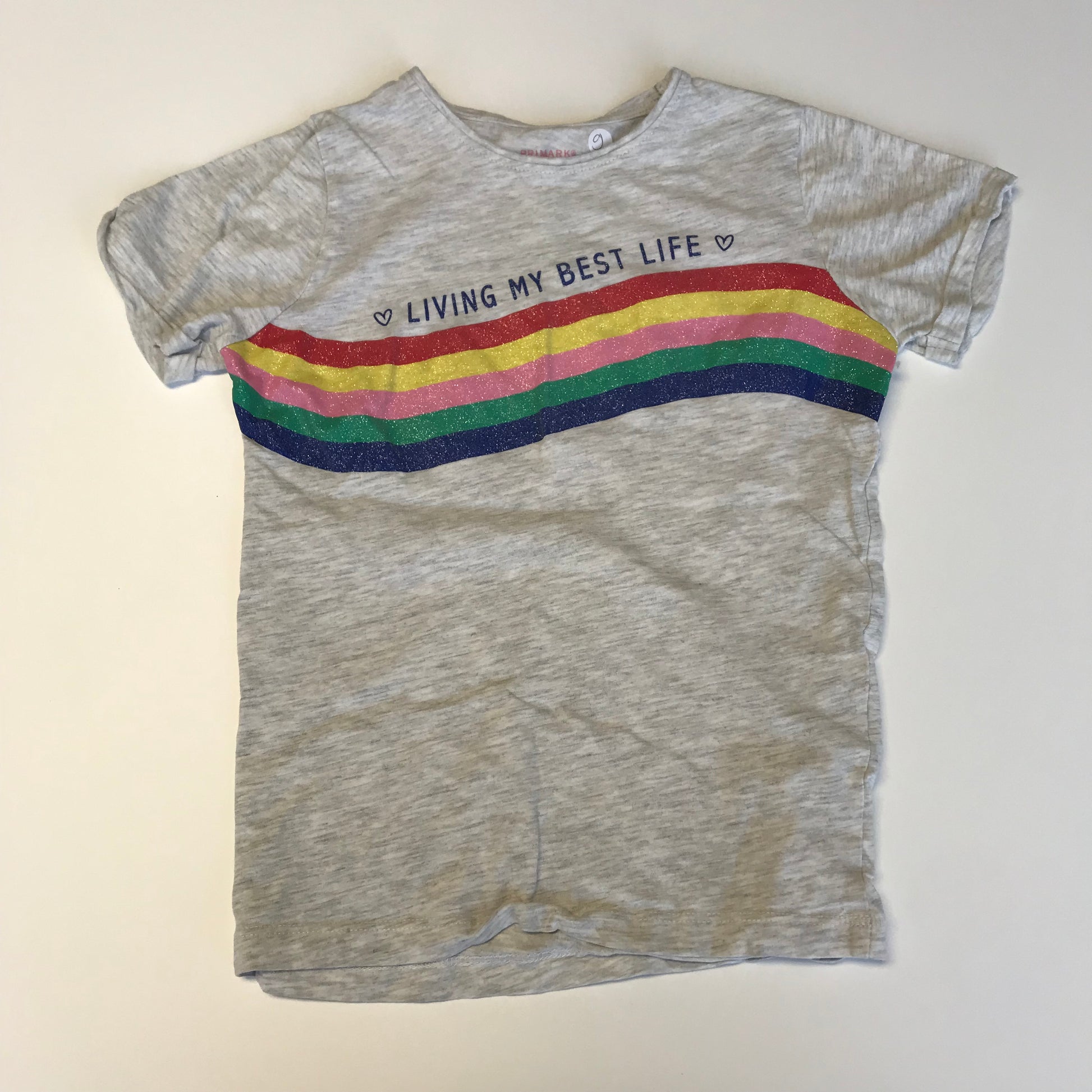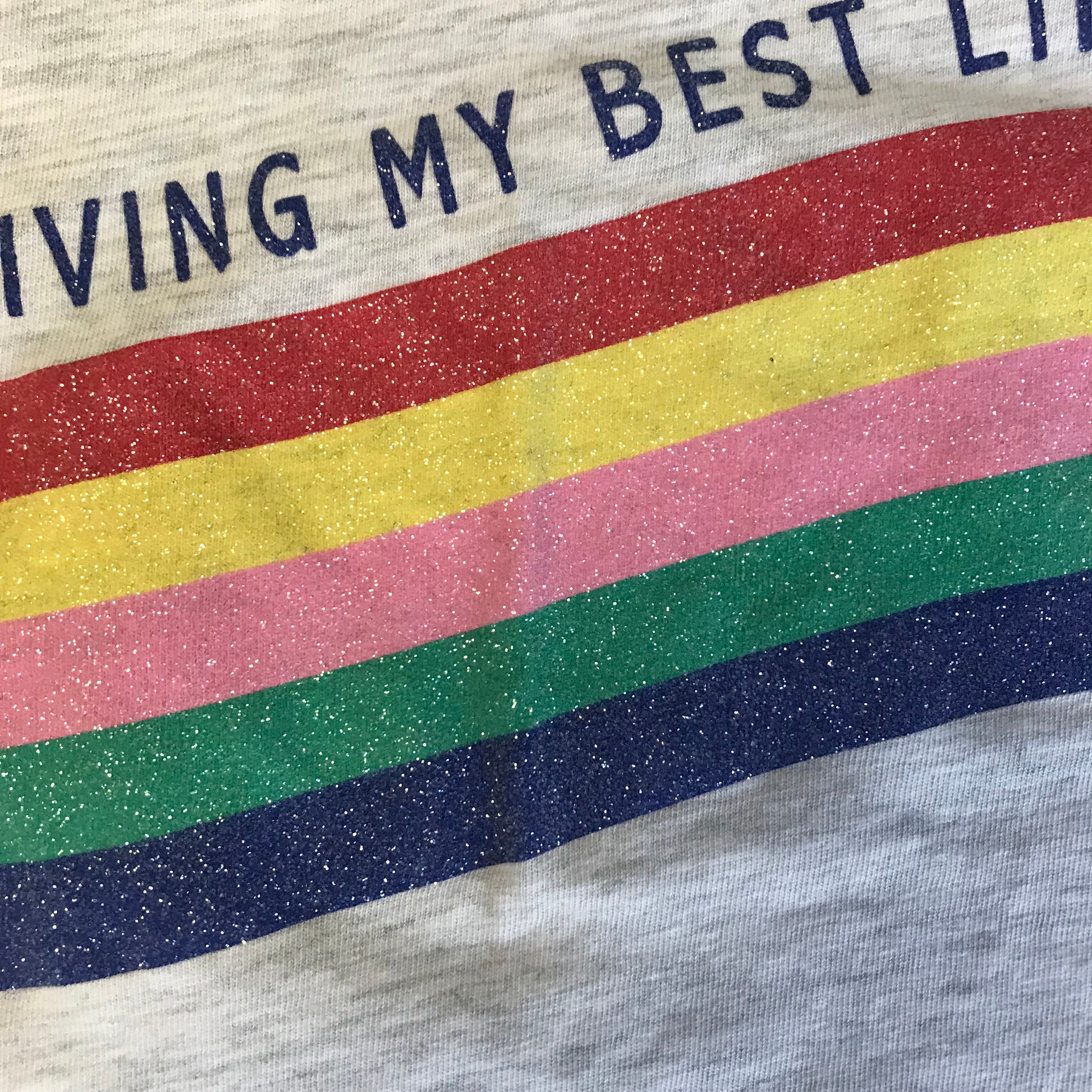 Preloved second hand Primark Sparkly Living My Best Life T-shirt with rainbow