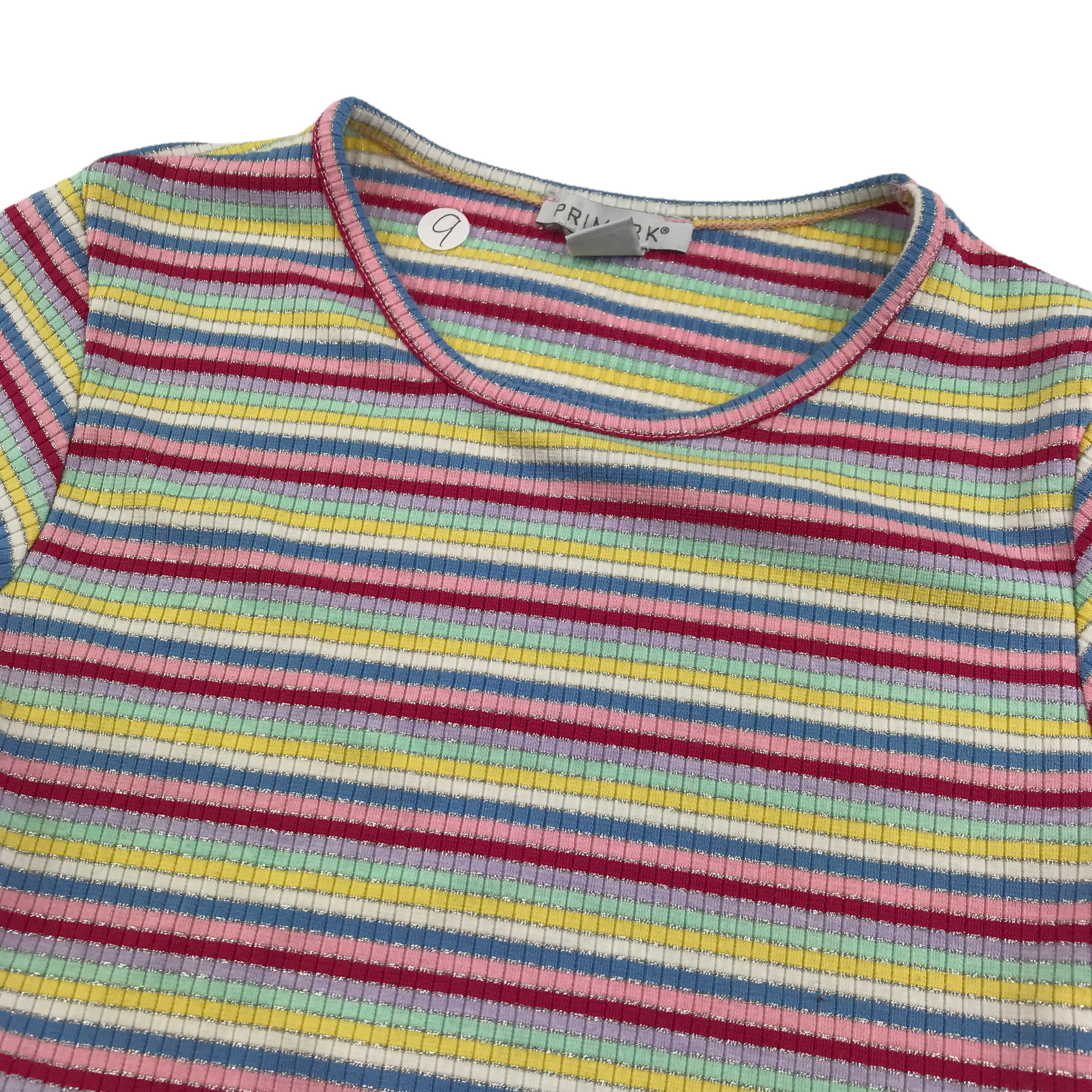 Primark Multicoloured Stripy Crop T-shirt Age 9