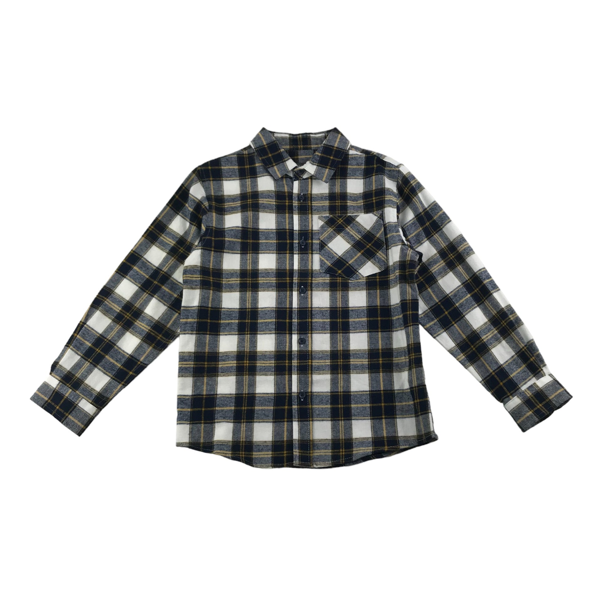 Preloved second-hand Primark Shirt Age 5 Navy White Mustard Check Pattern Long Sleeve Button Up