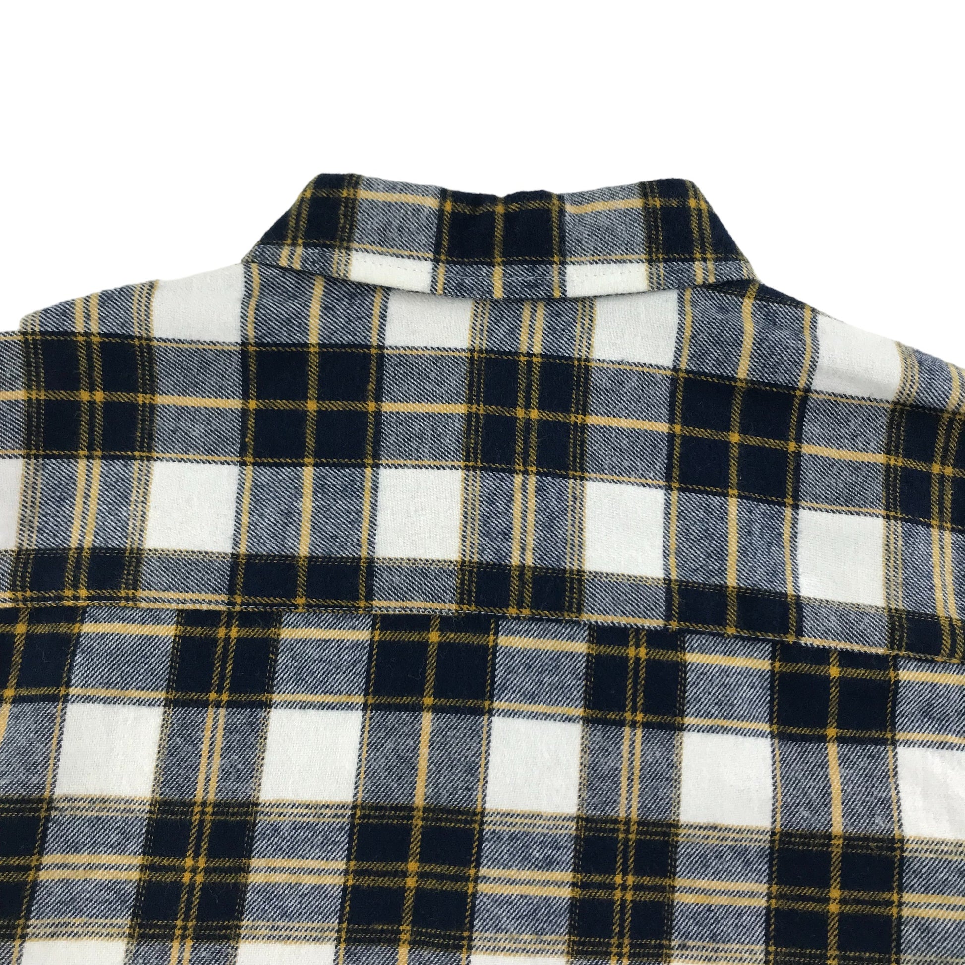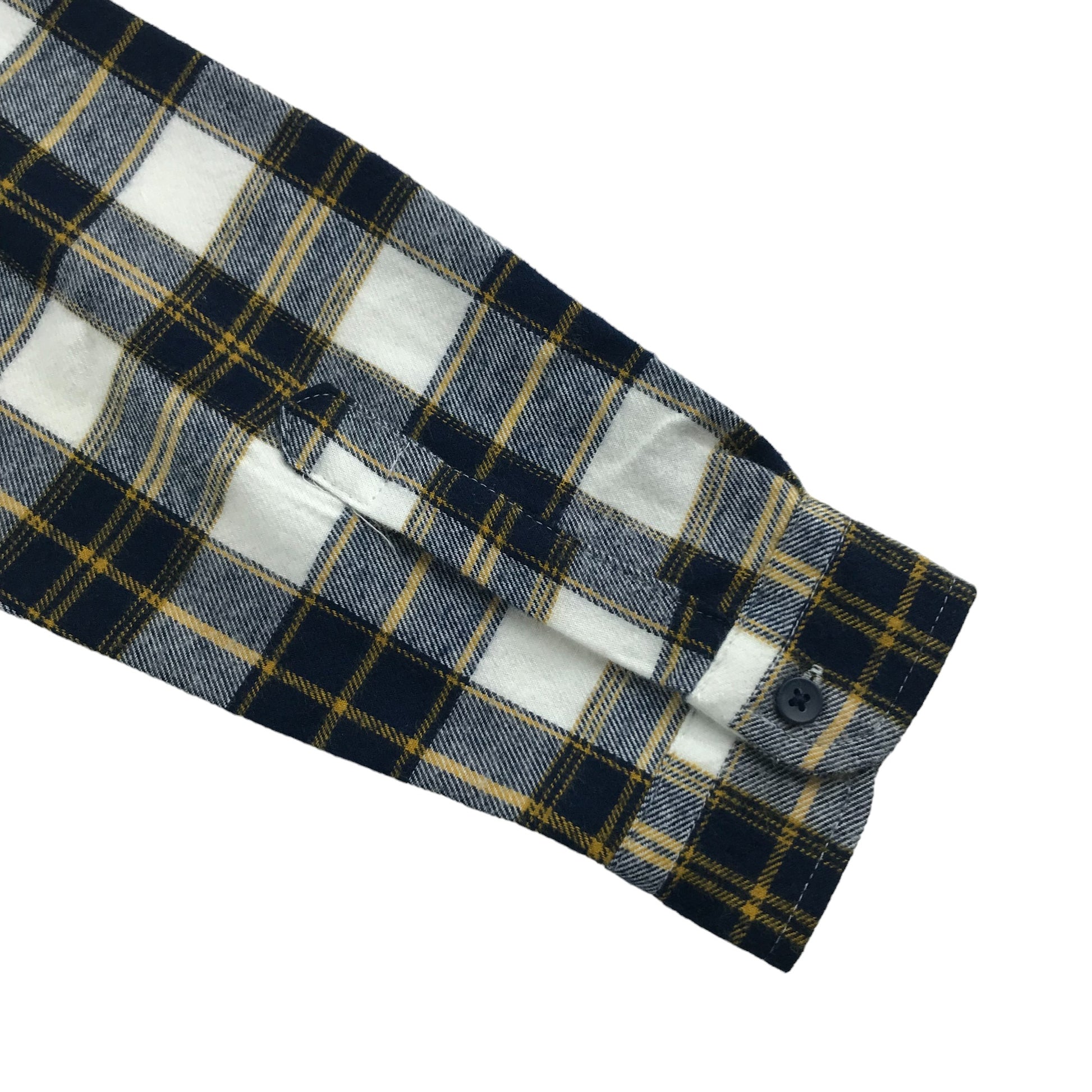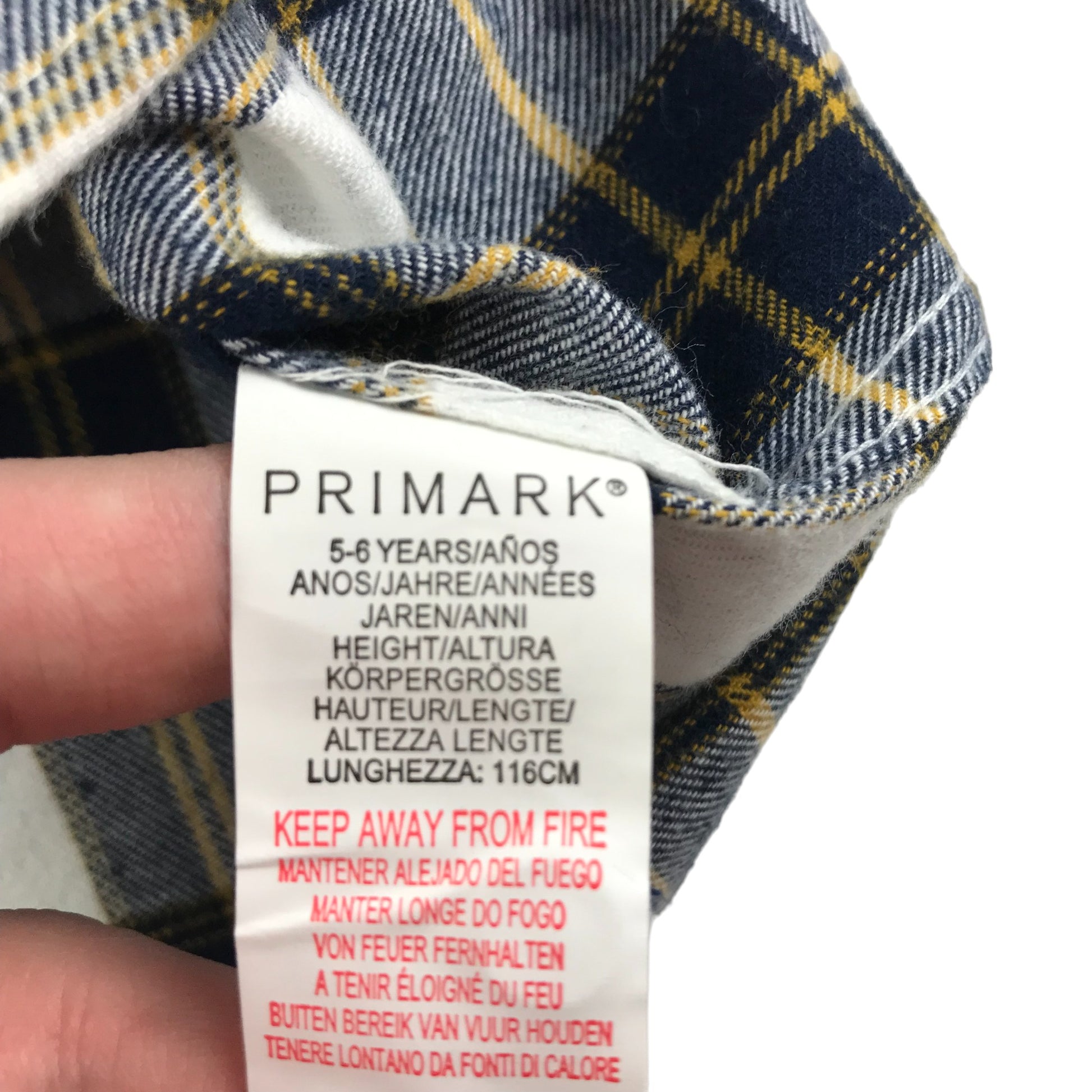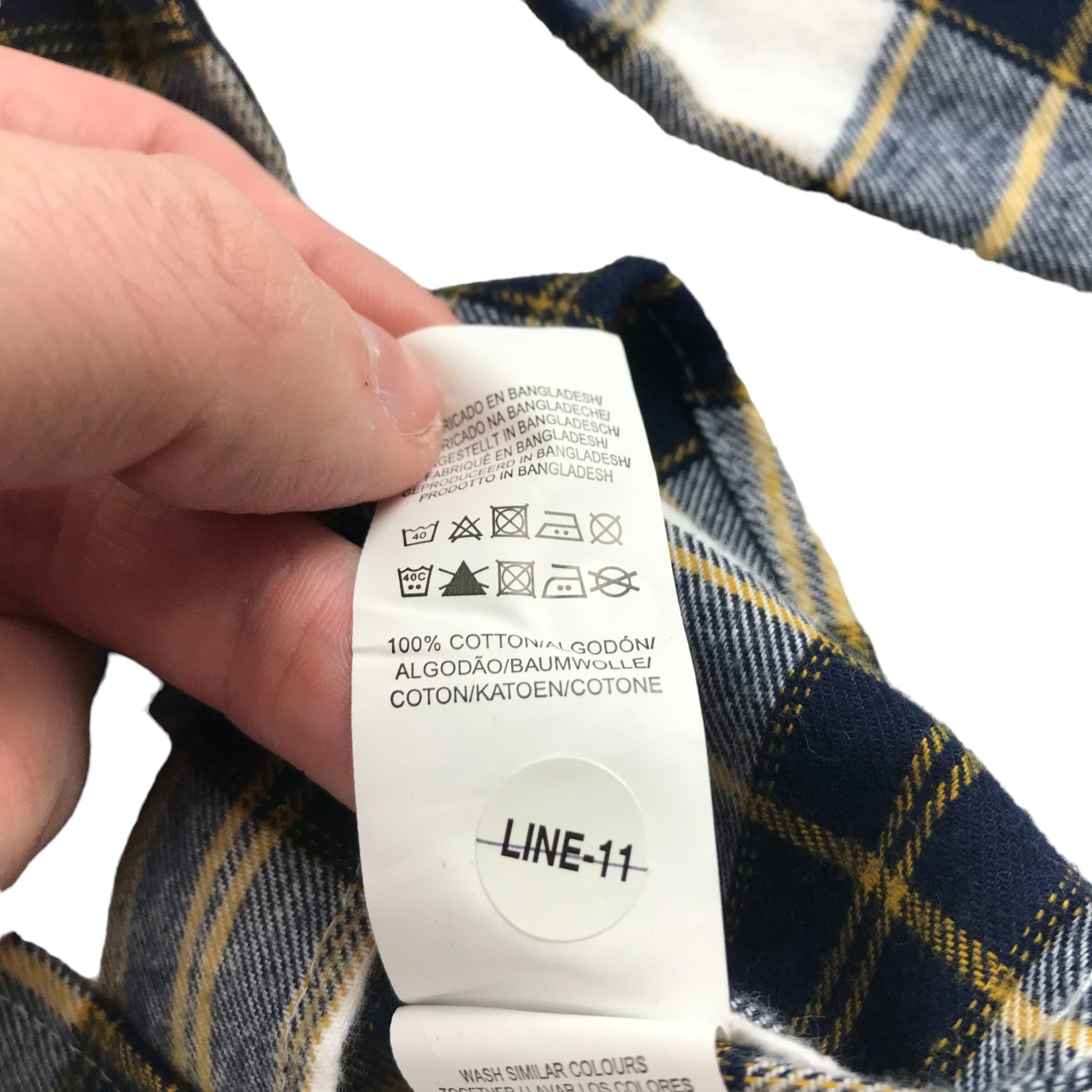 Primark Shirt Age 5 Navy White Mustard Check Pattern Long Sleeve Button Up Cotton
