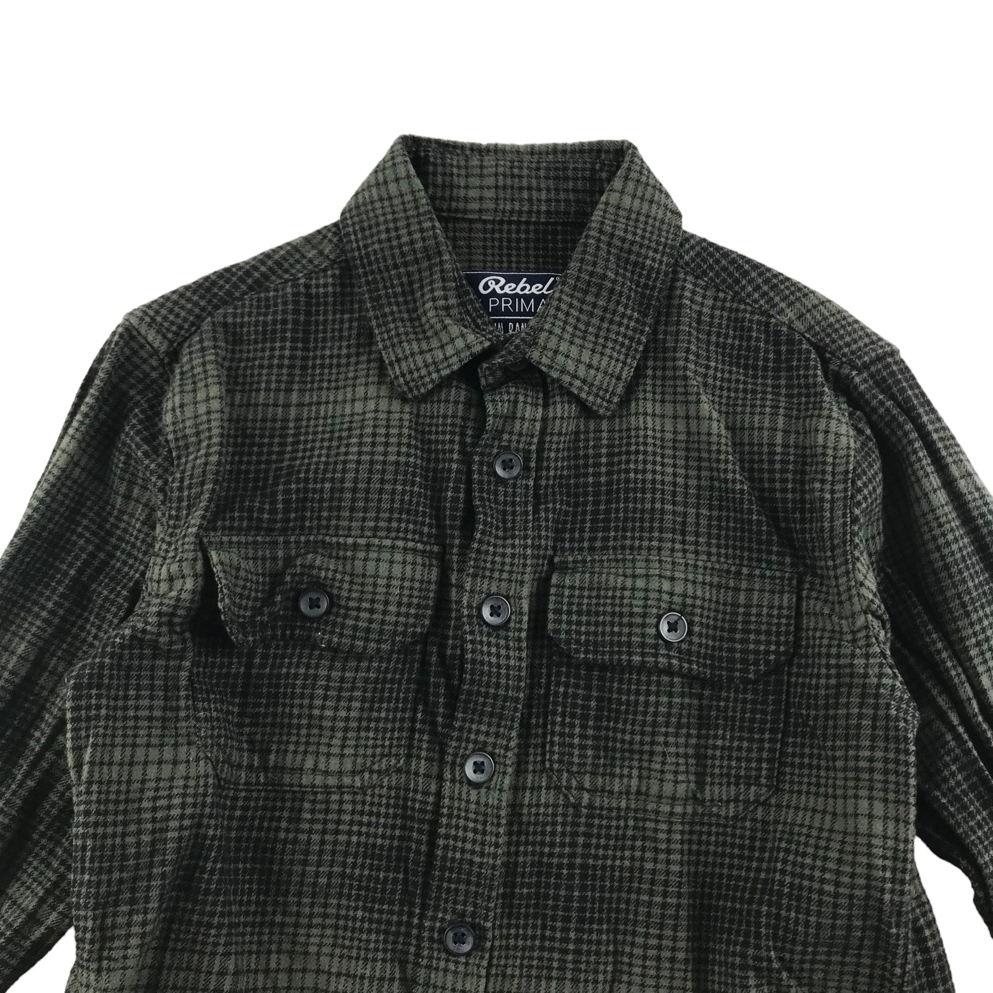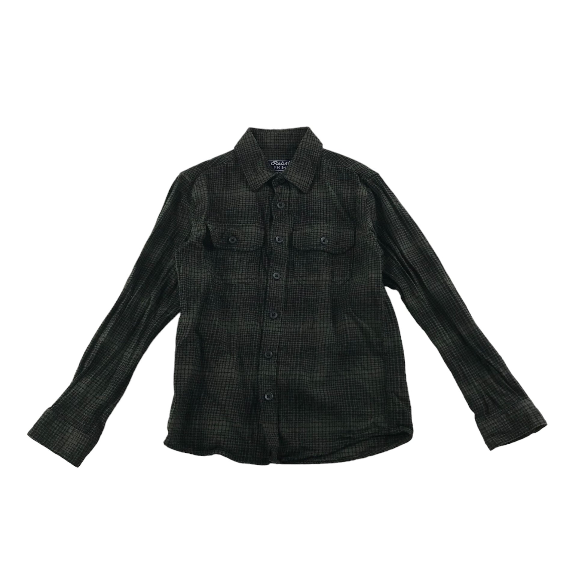 Primark Shirt Age 7 Khaki Green Check Pattern Button Up Cotton
