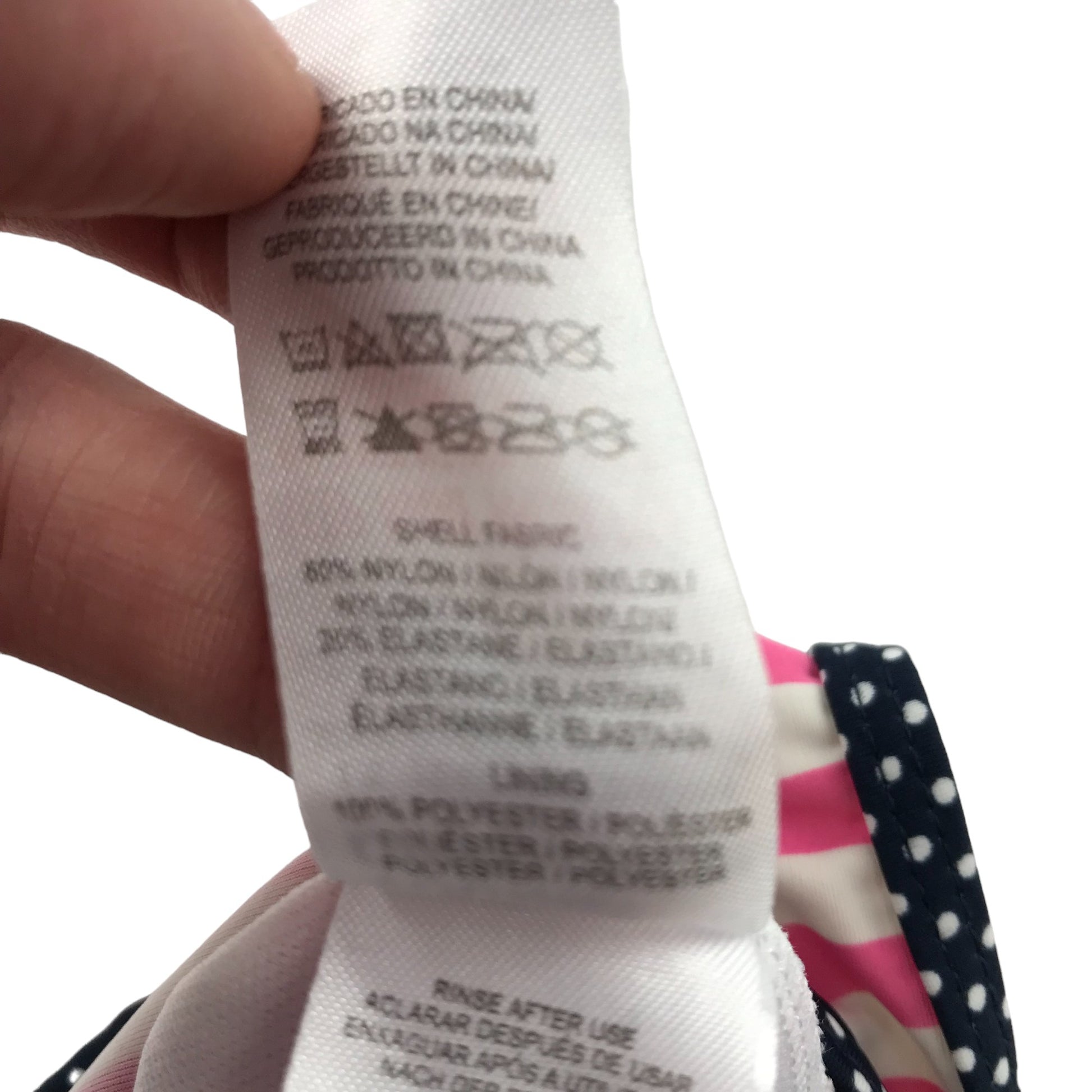 - Materials: nylon, elastane, polyester