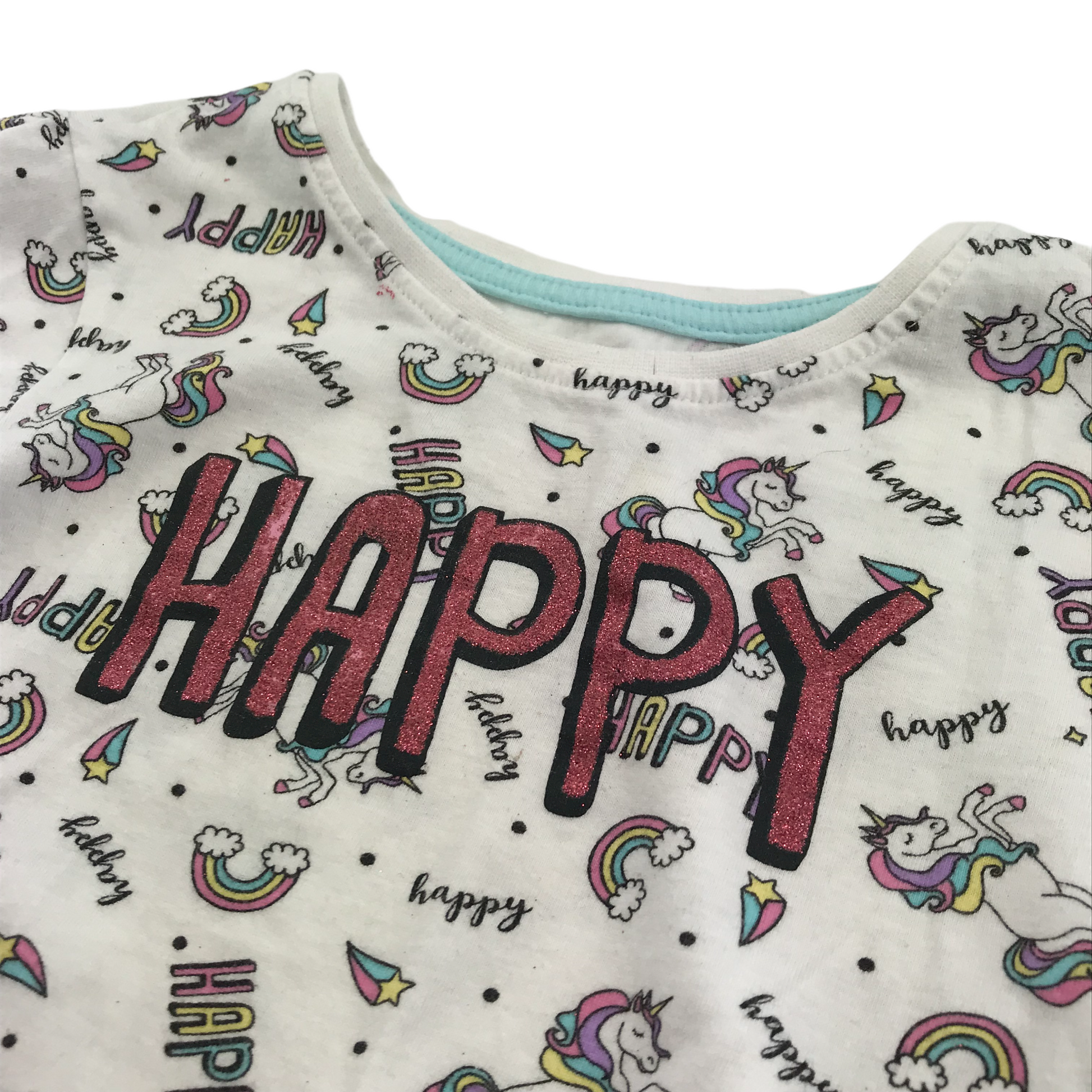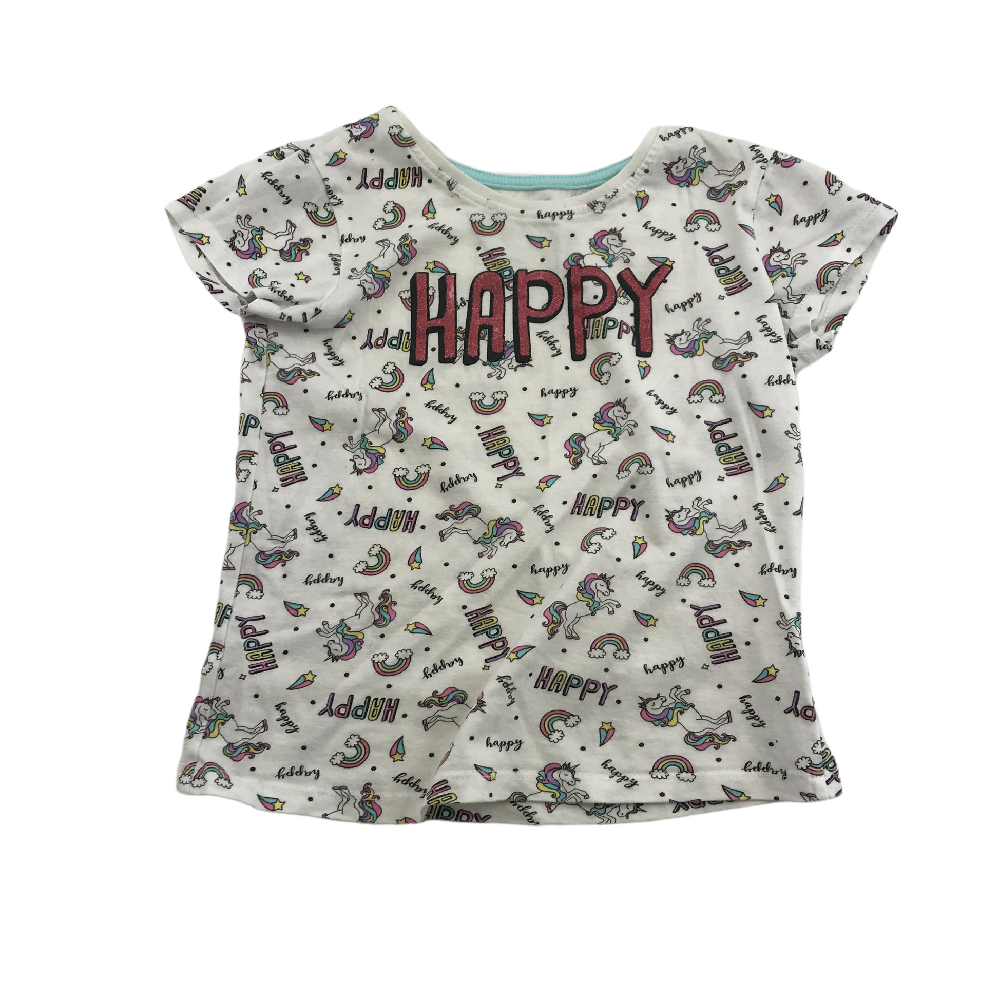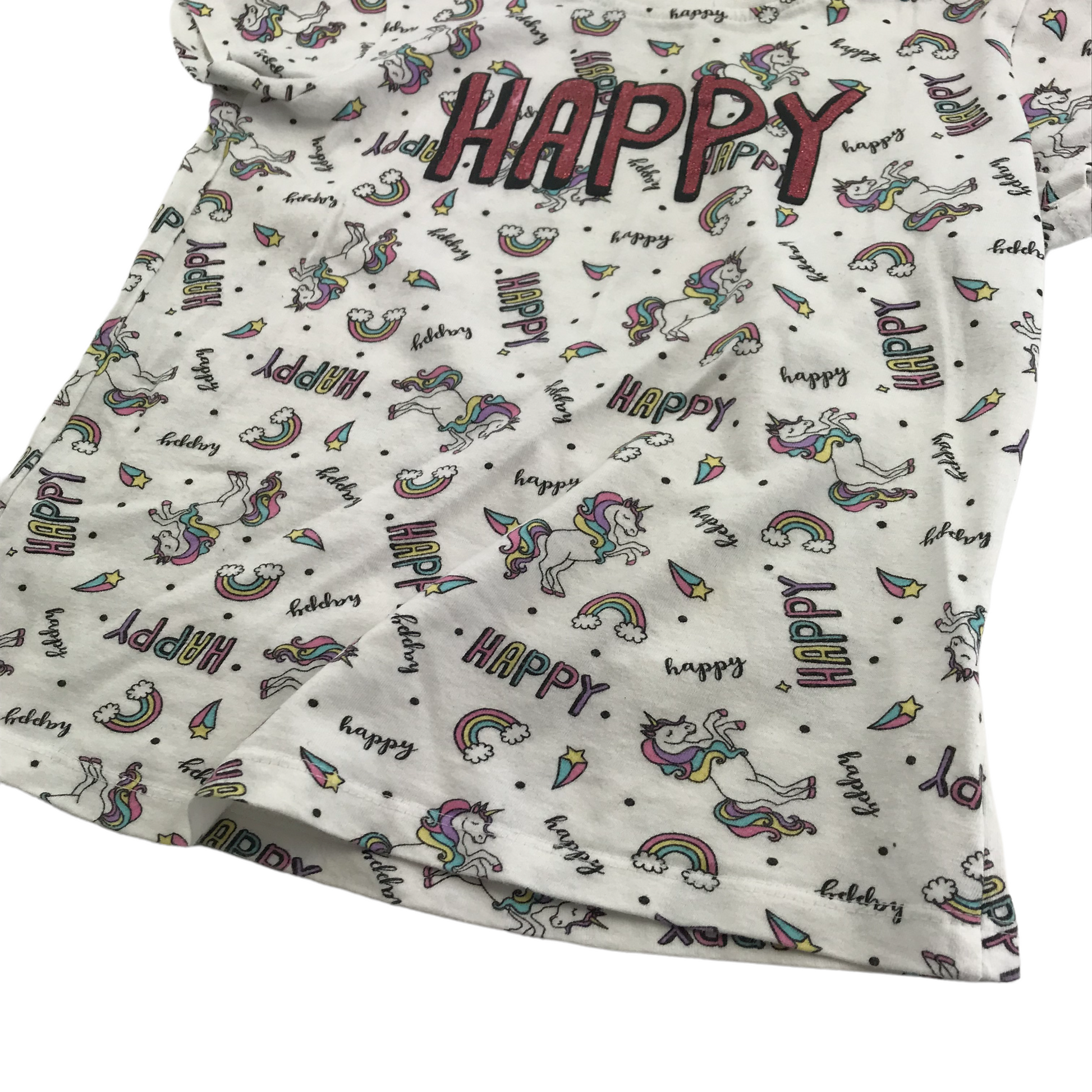 Preloved second hand Primark White Rainbow Unicorn T-shirt Age 6