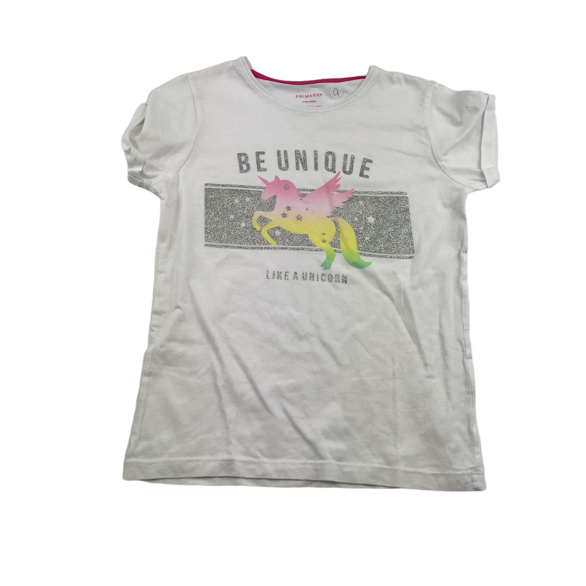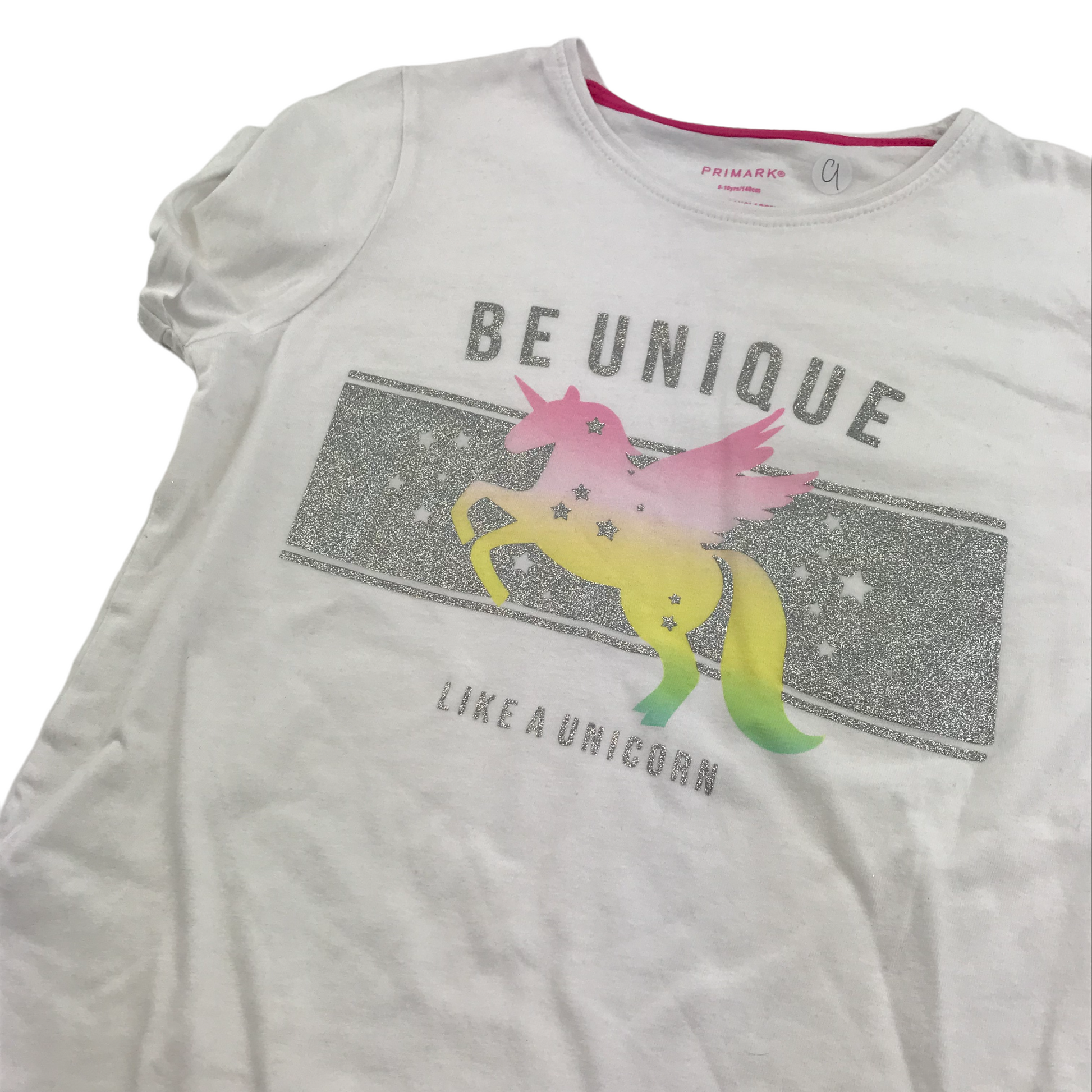 Preloved second hand Primark White Unicorn T-shirt Age 9