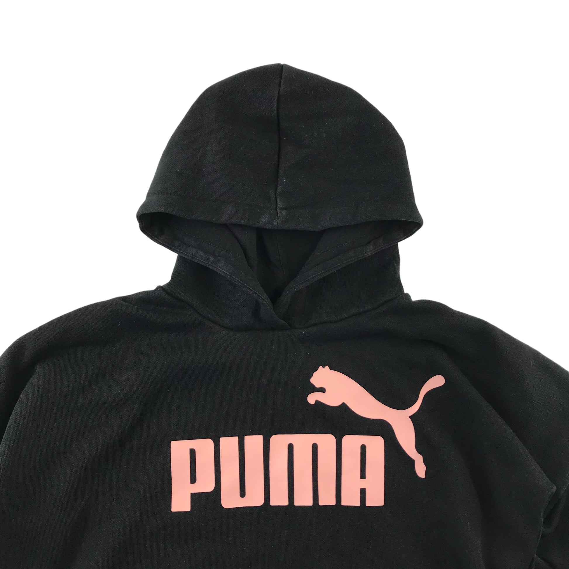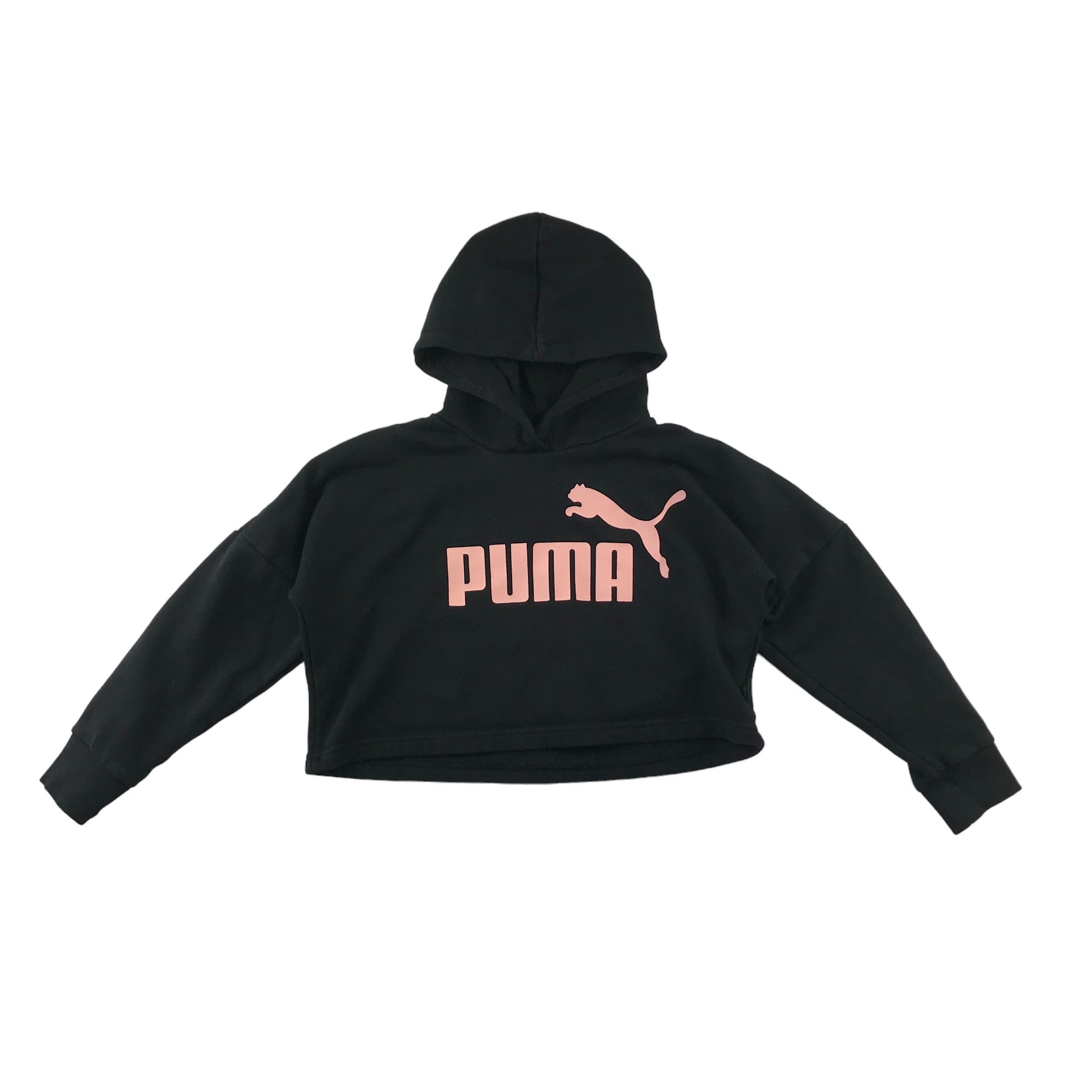 Puma Hoodie Age 7 Black Cropped Pink Logo