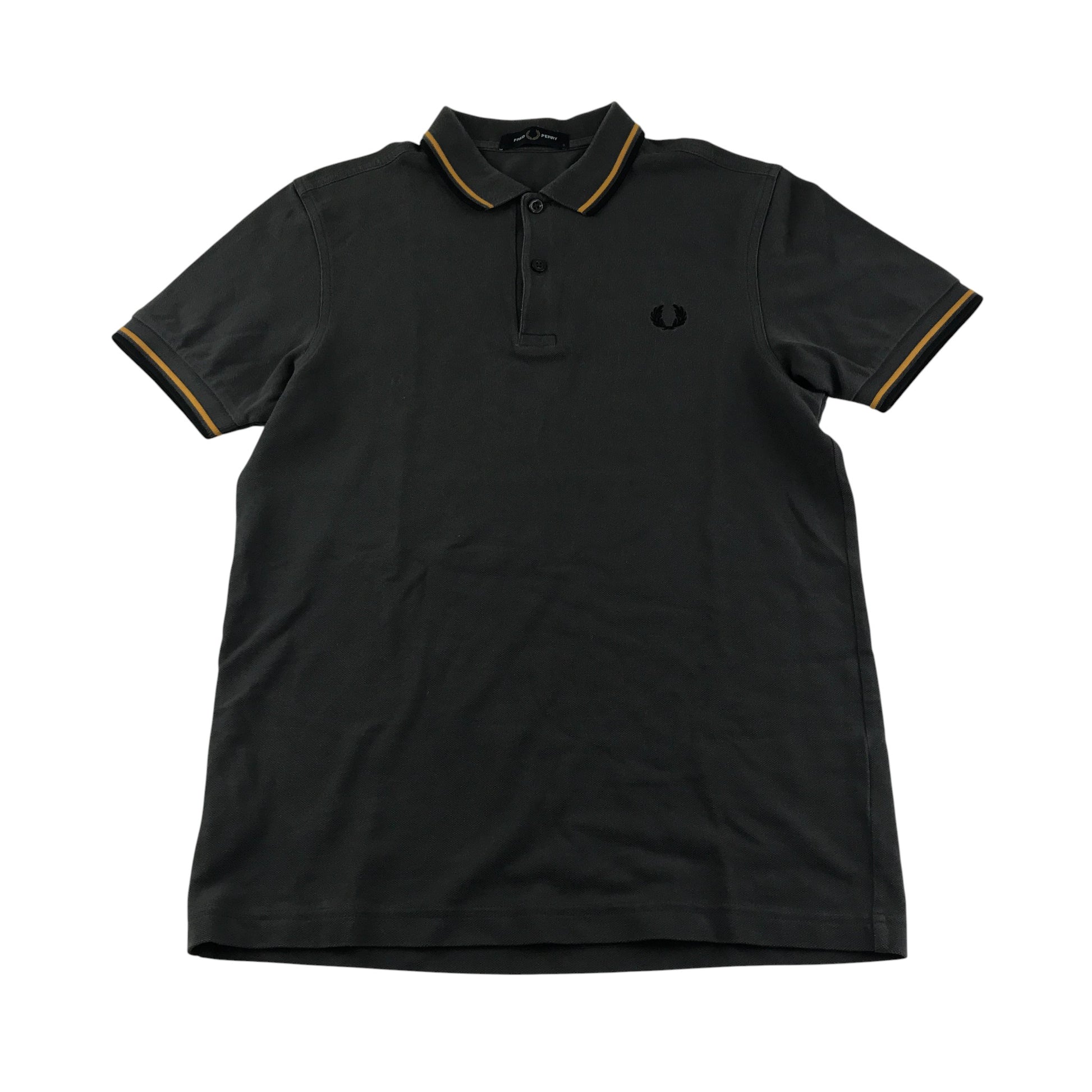 Preloved second hand Fred Perry Polo Shirt Men's S Grey with Orange and Black Detailing Embroidered Logo Cotton