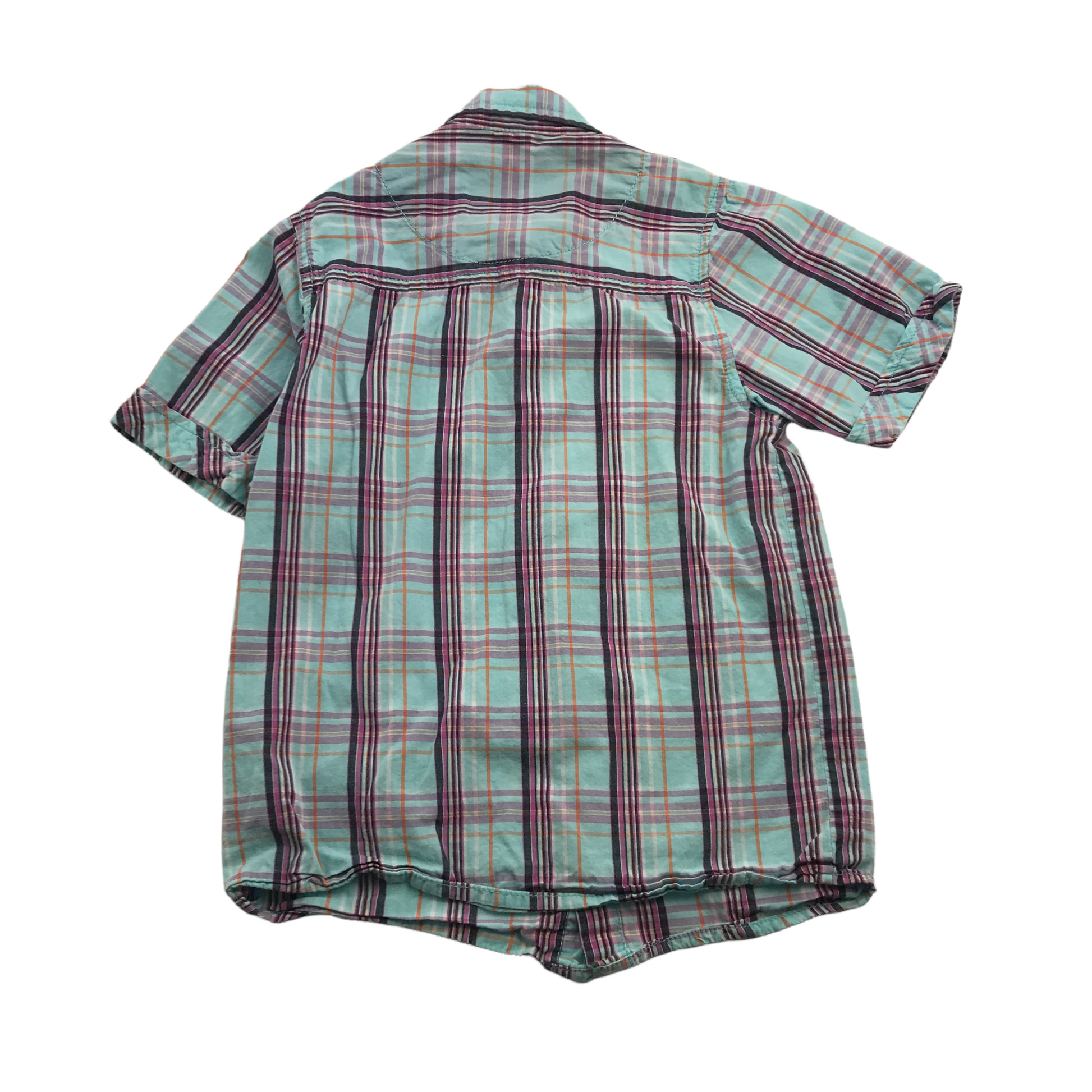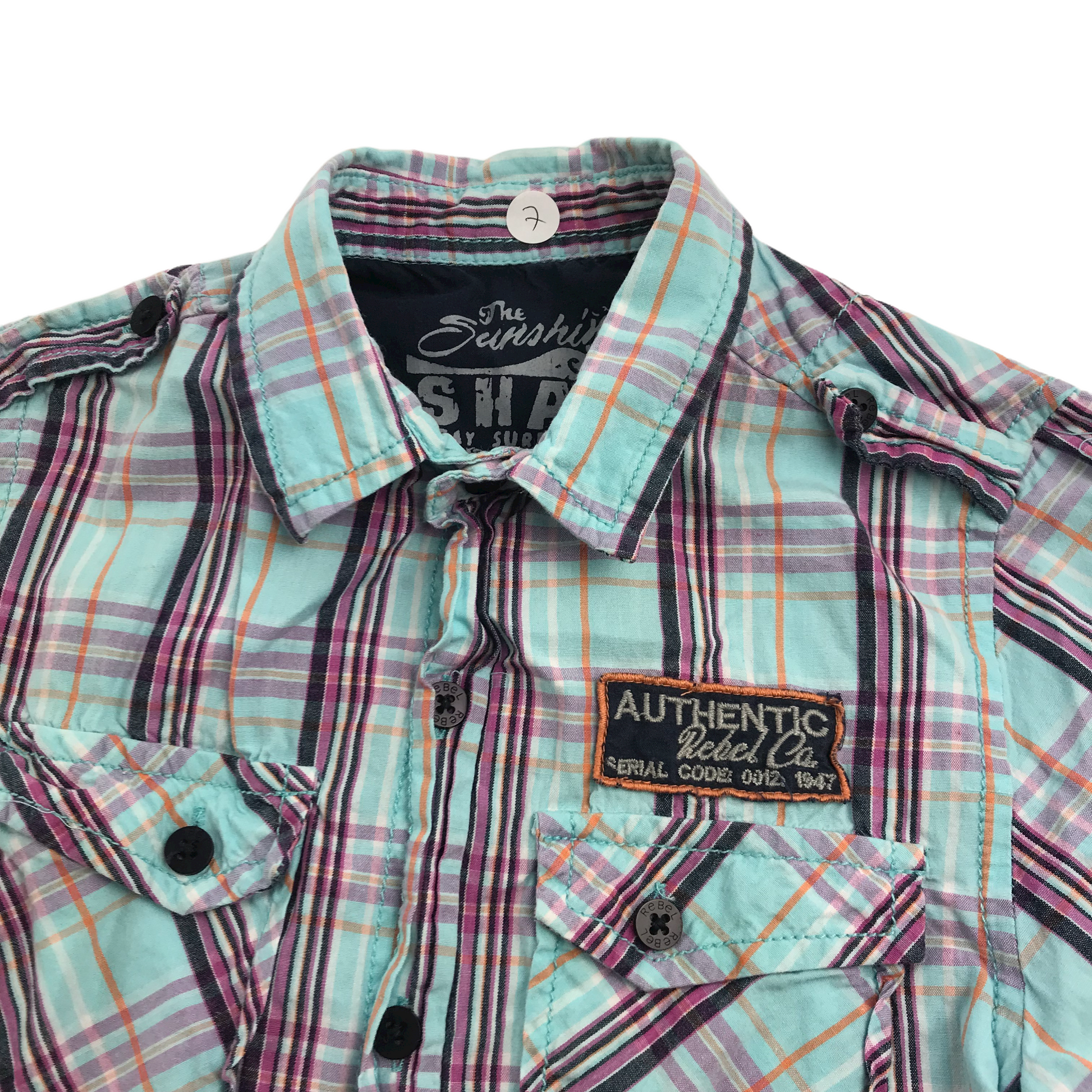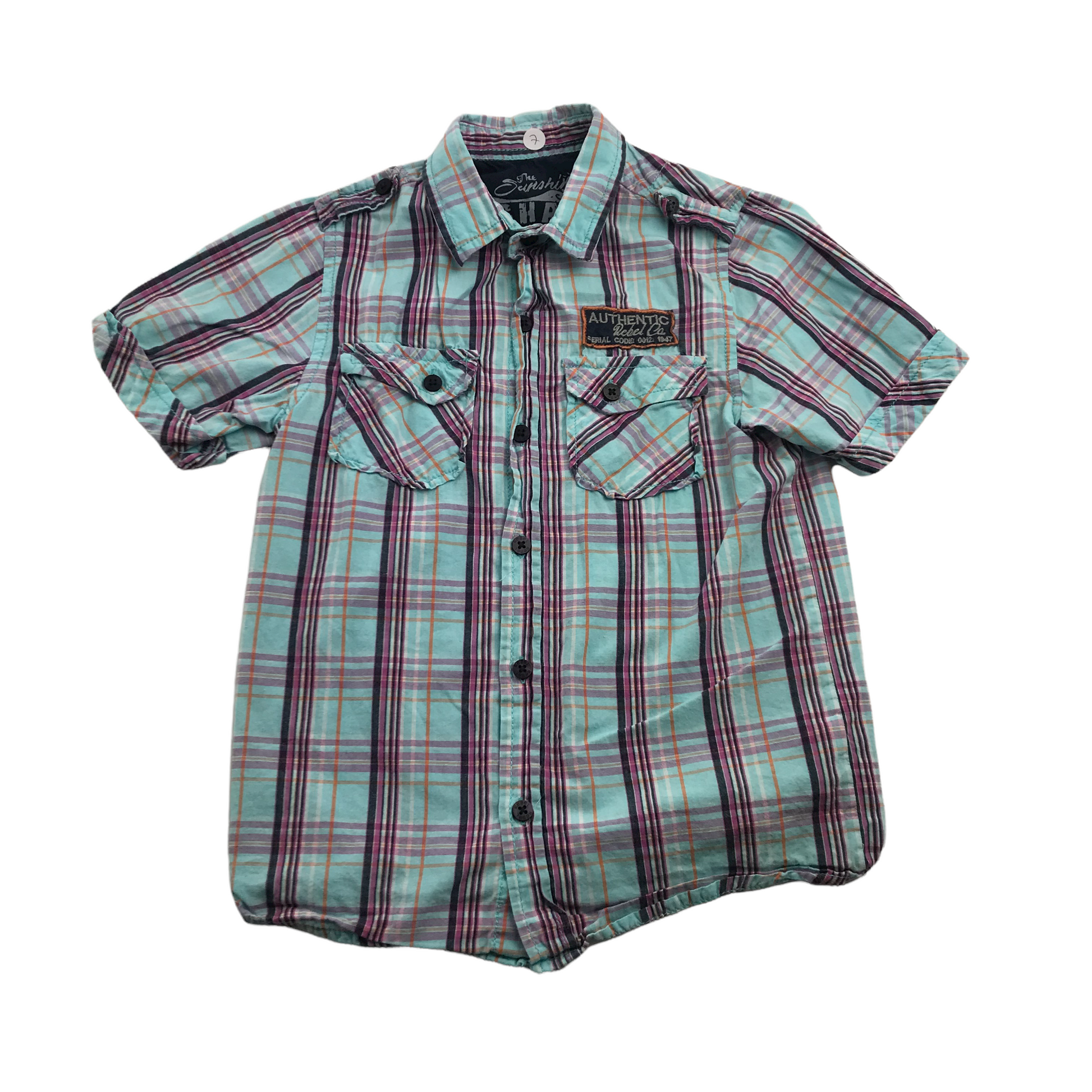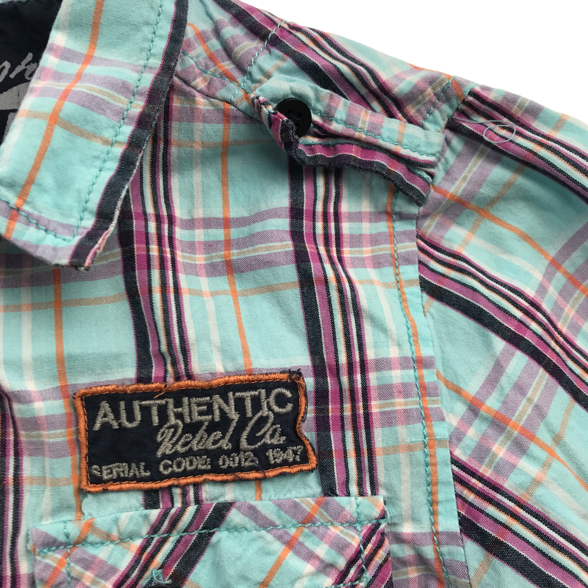 Preloved second hand Rebel Purple and Light Blue Checked Short Sleeve Shirt Age 7