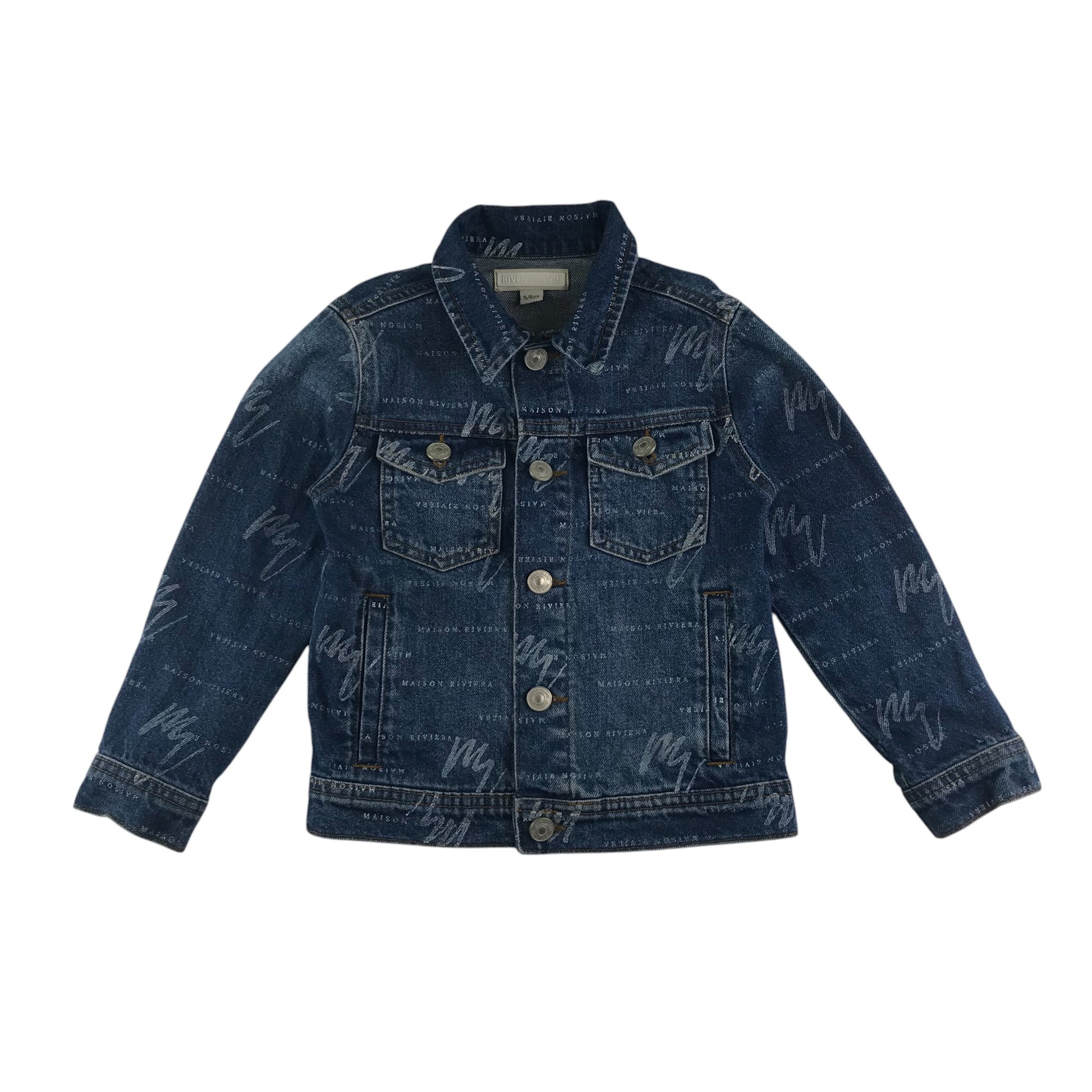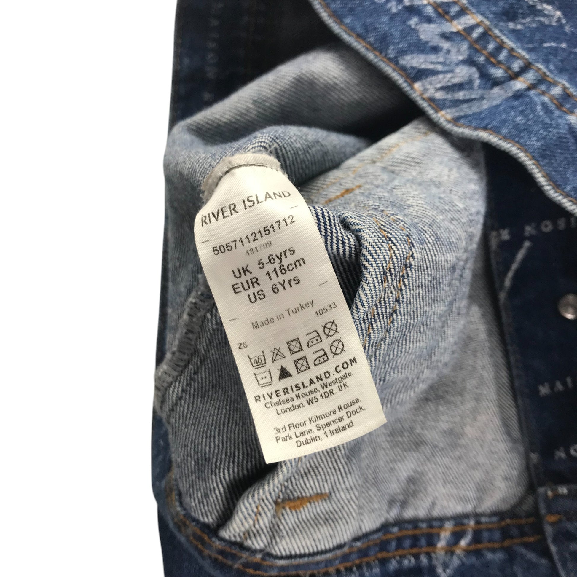 River Island denim jacket 5-6 years blue denim cotton with graphic prints