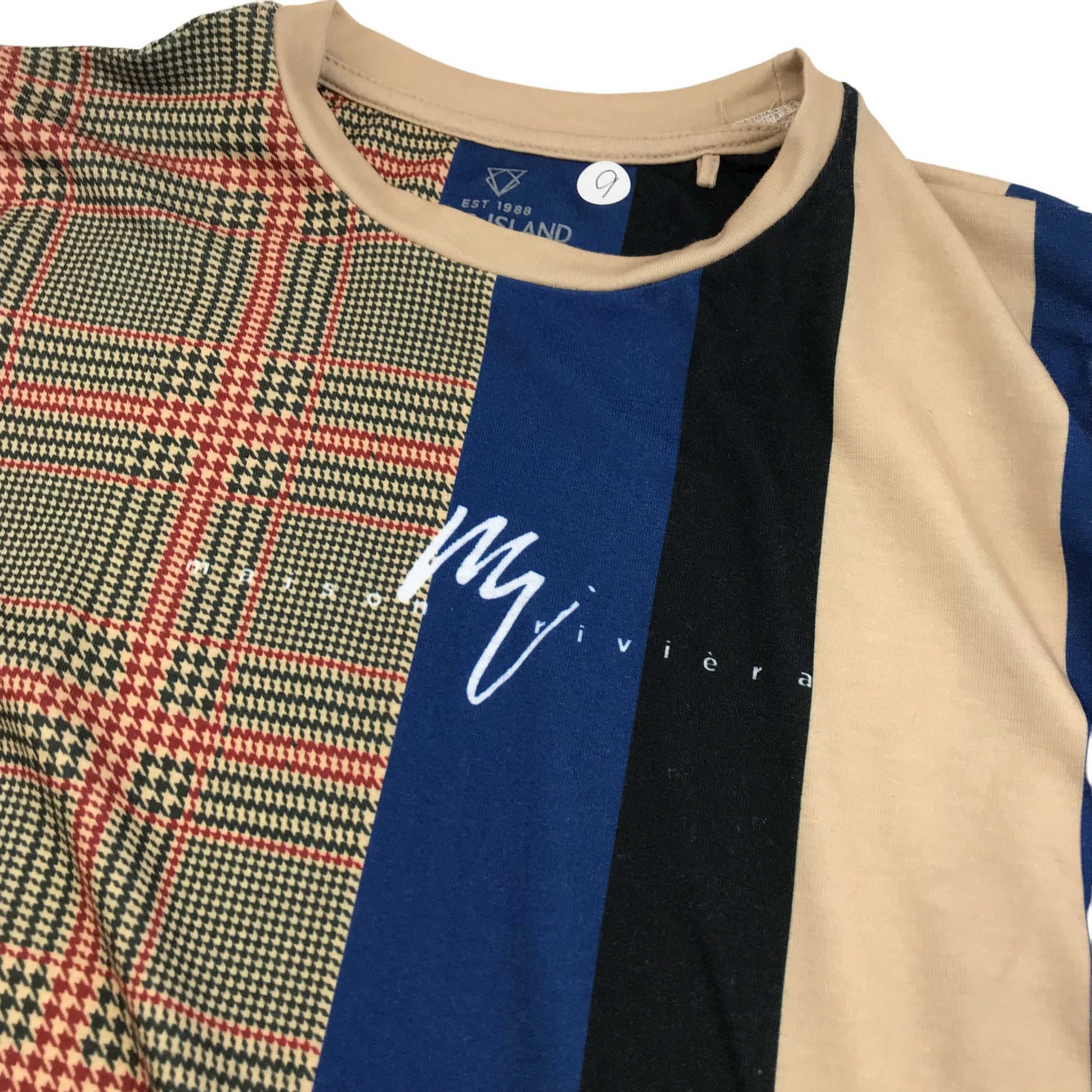 Preloved second hand River Island Multicoloured Checked and Stripy T-shirt Age 9