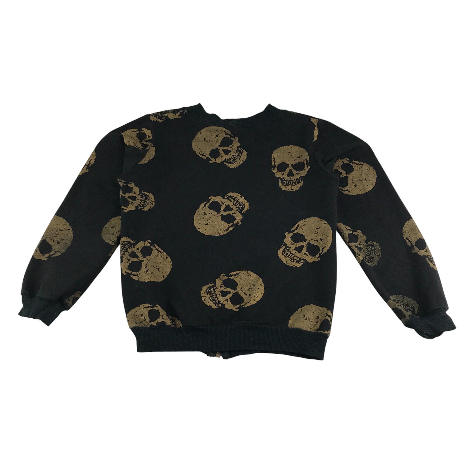 Preloved second hand Hanweisi Sweater 9-10 years black with golden skull print full zipper