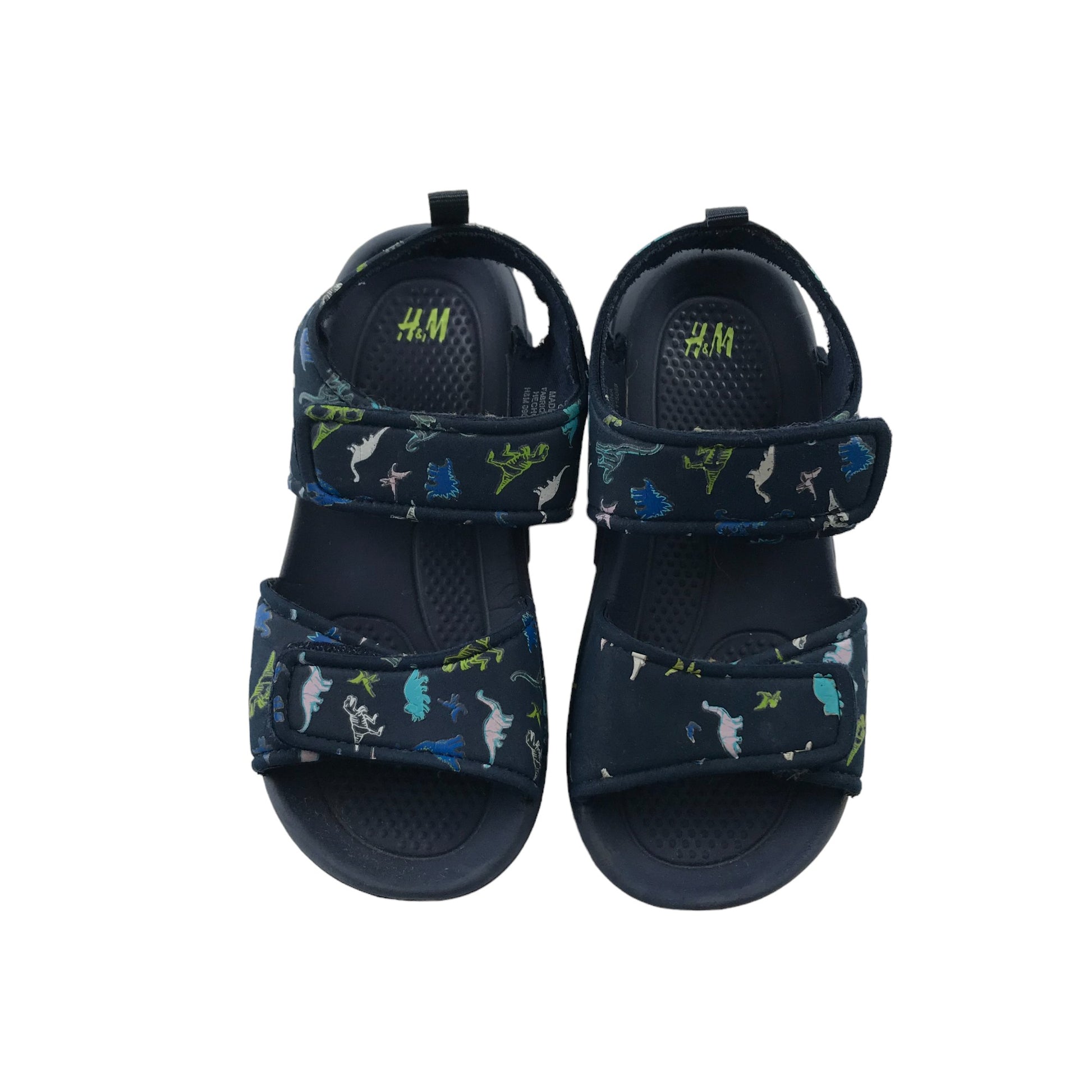 Preloved second hand H&M Sandals Shoe Size 10-1.5 junior Navy Blue Dinosaur Print Pattern