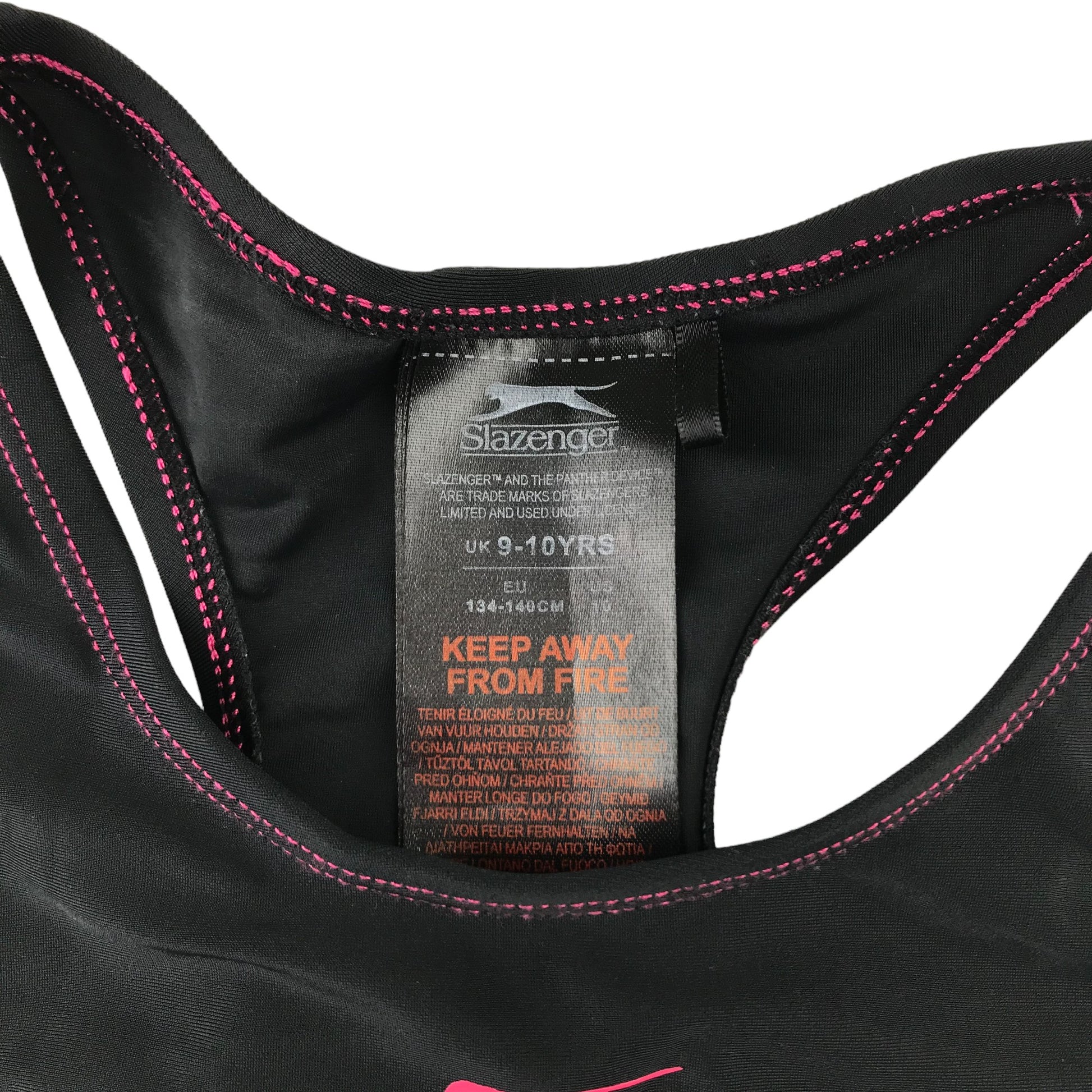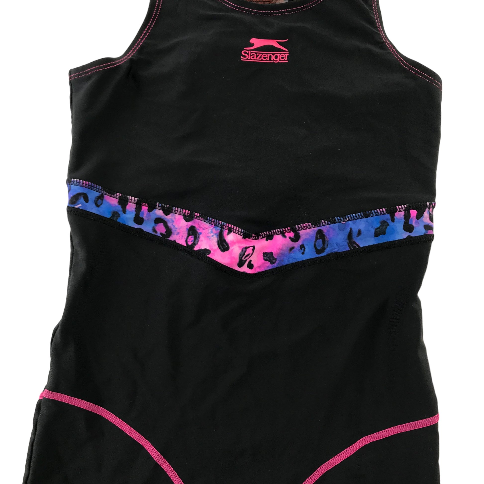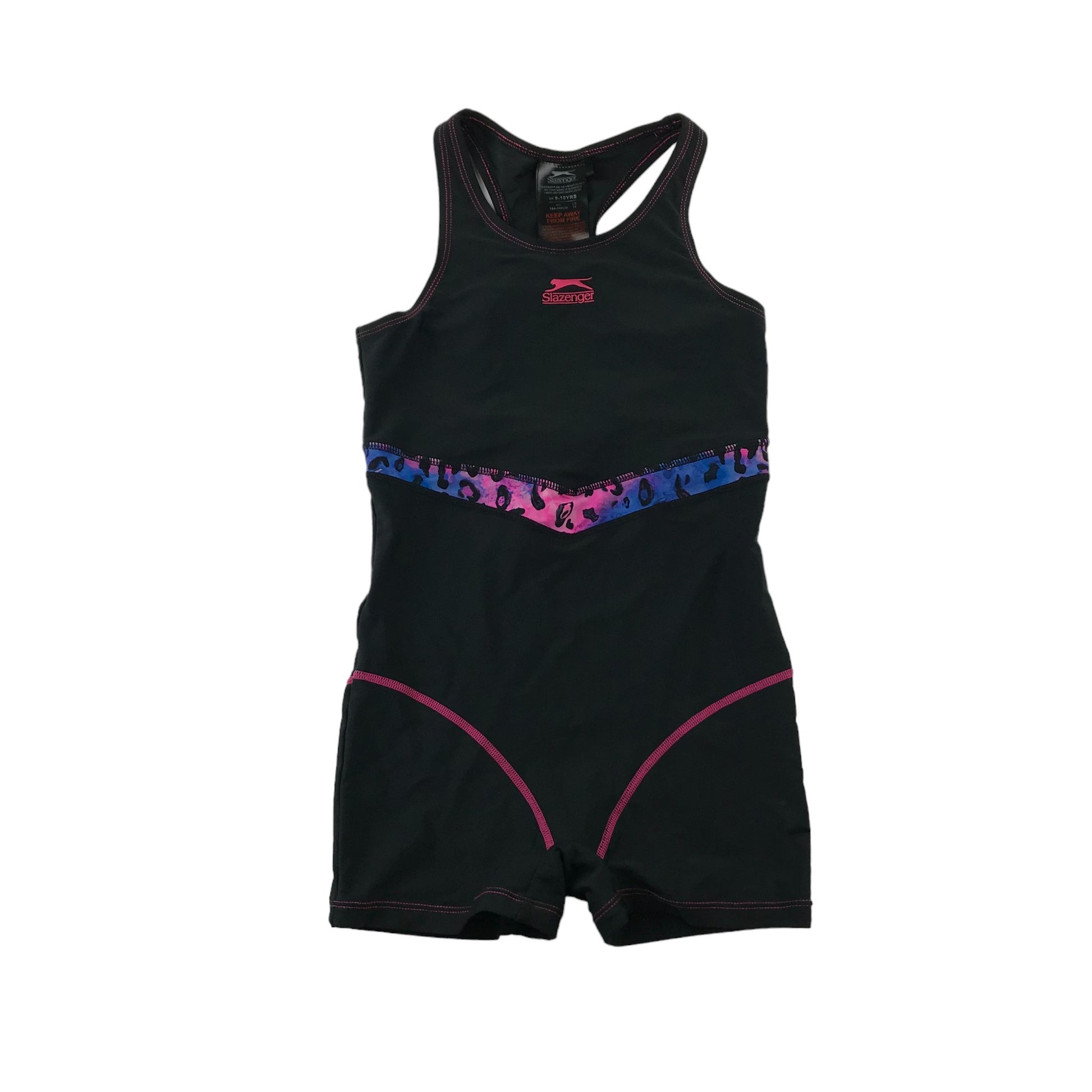 Slazenger swimsuit 9-10 years black pink and blue decorated shorts bottom one piece cossie