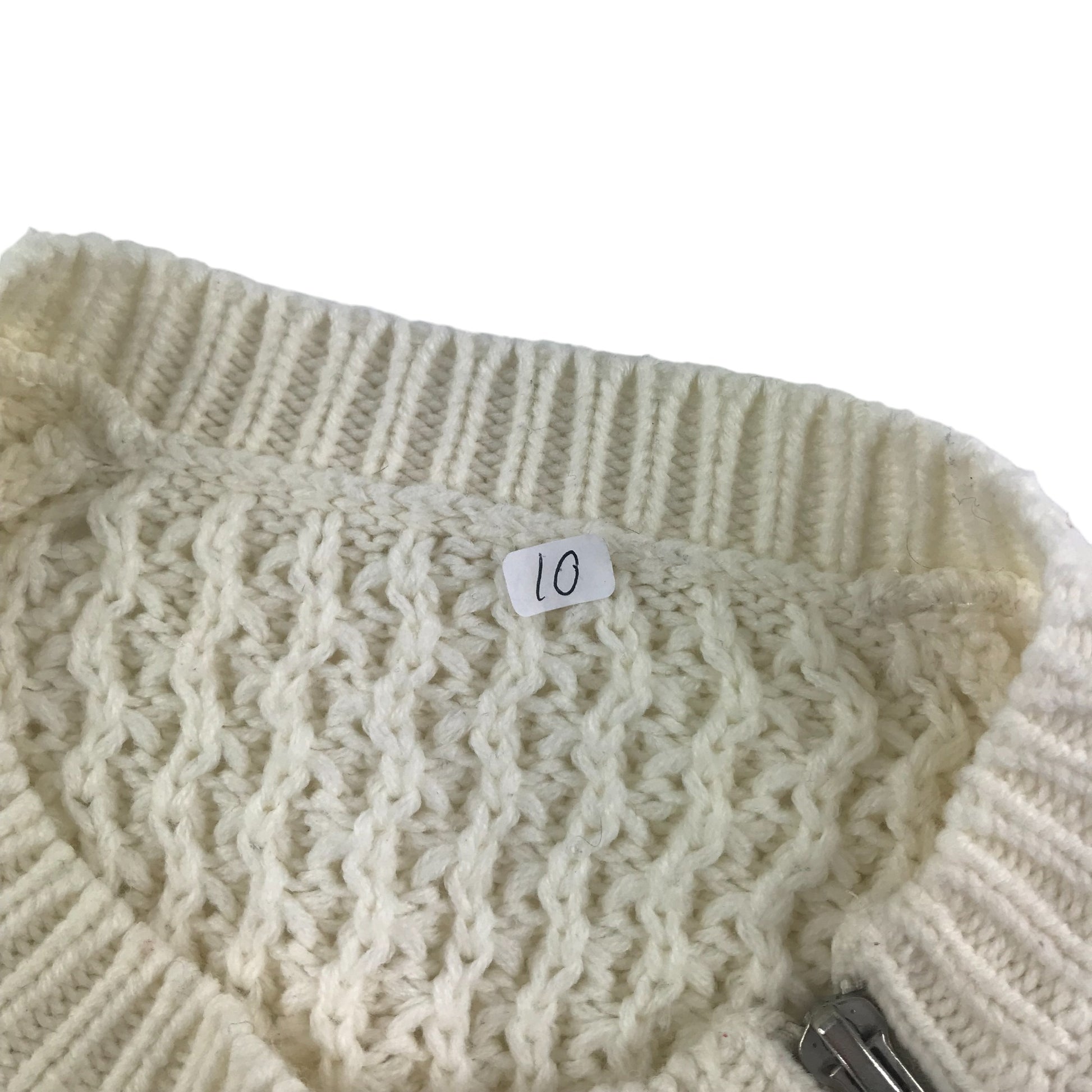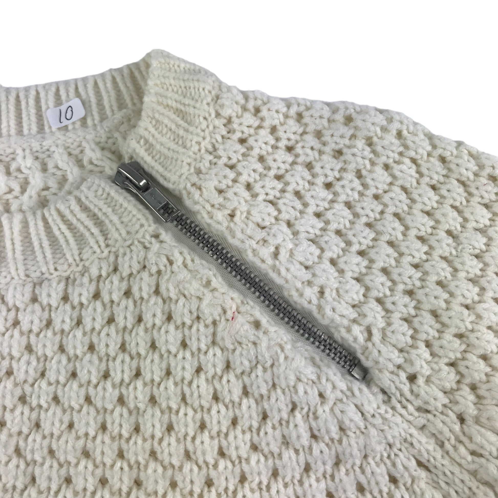 Preloved second-hand St Bernard Jumper Age 9 White Knitted Pattern Shoulder Zip Detail