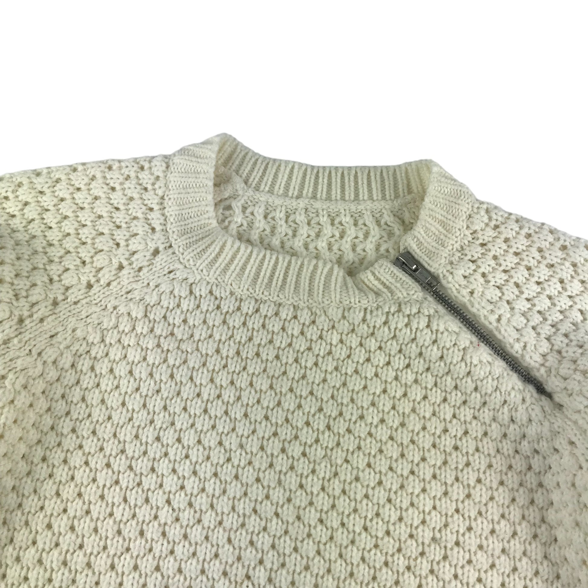 - Description: Long sleeve knitted pattern jumper with zipper detail in the shoulder, cream white