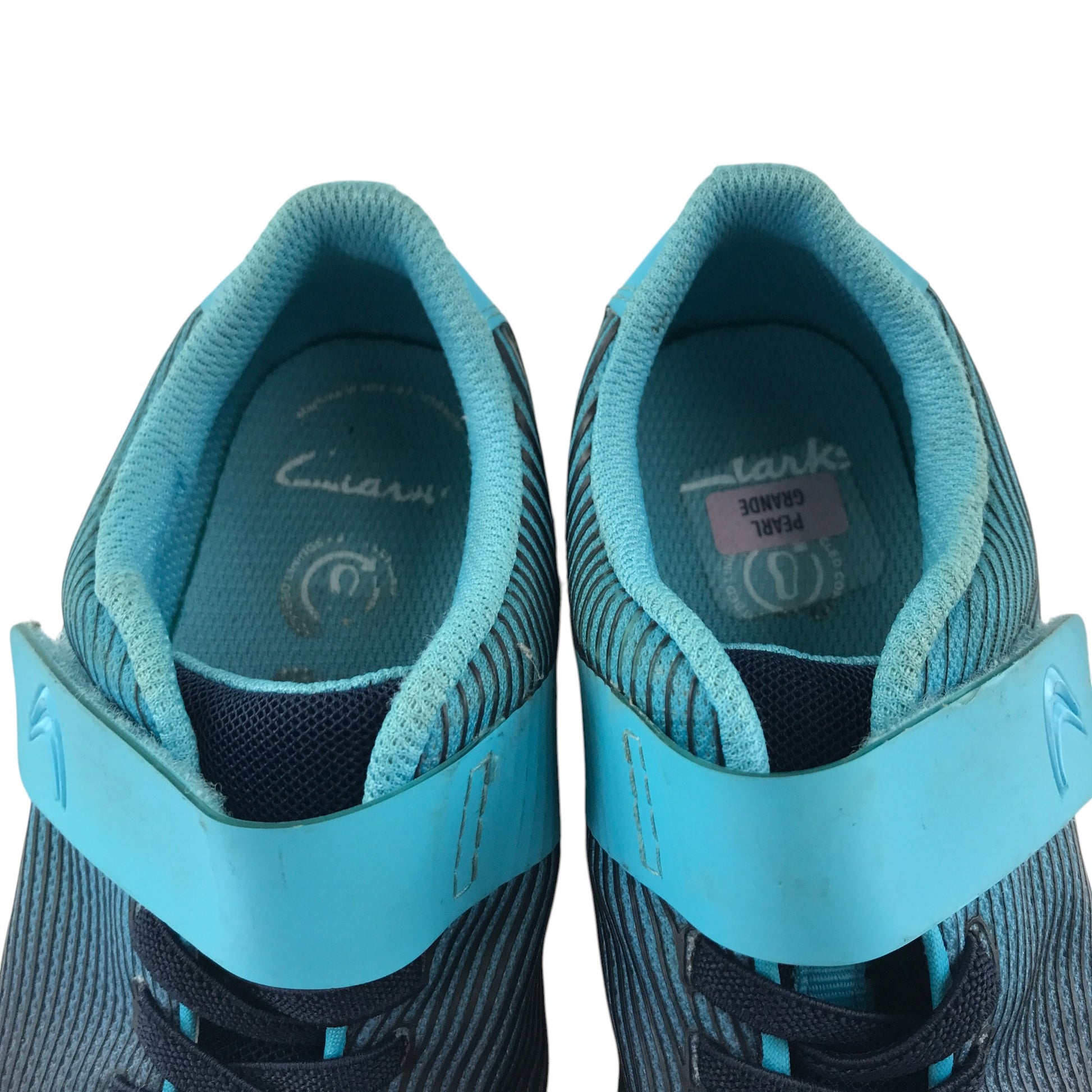 Preloved second hand Clarks trainers shoe size 1G navy blue and white colourway