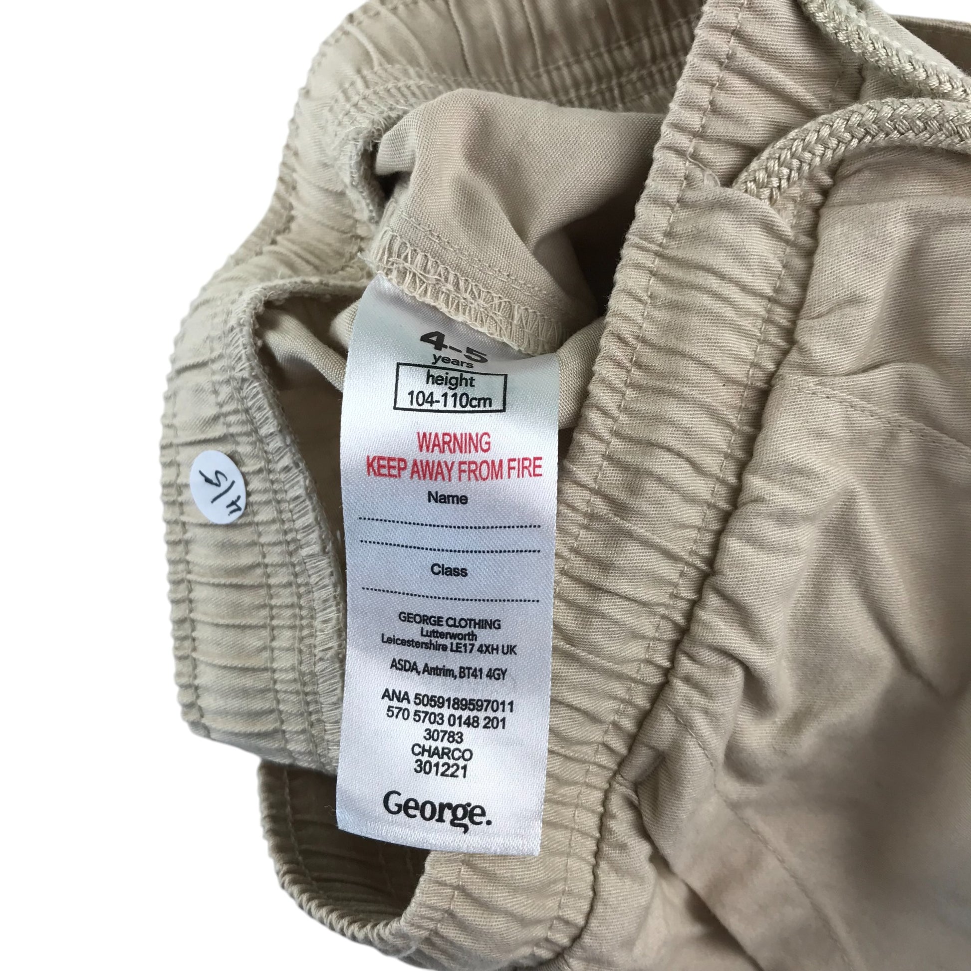 Preloved second hand George shorts 4-5 years beige plain elasticated waist cotton