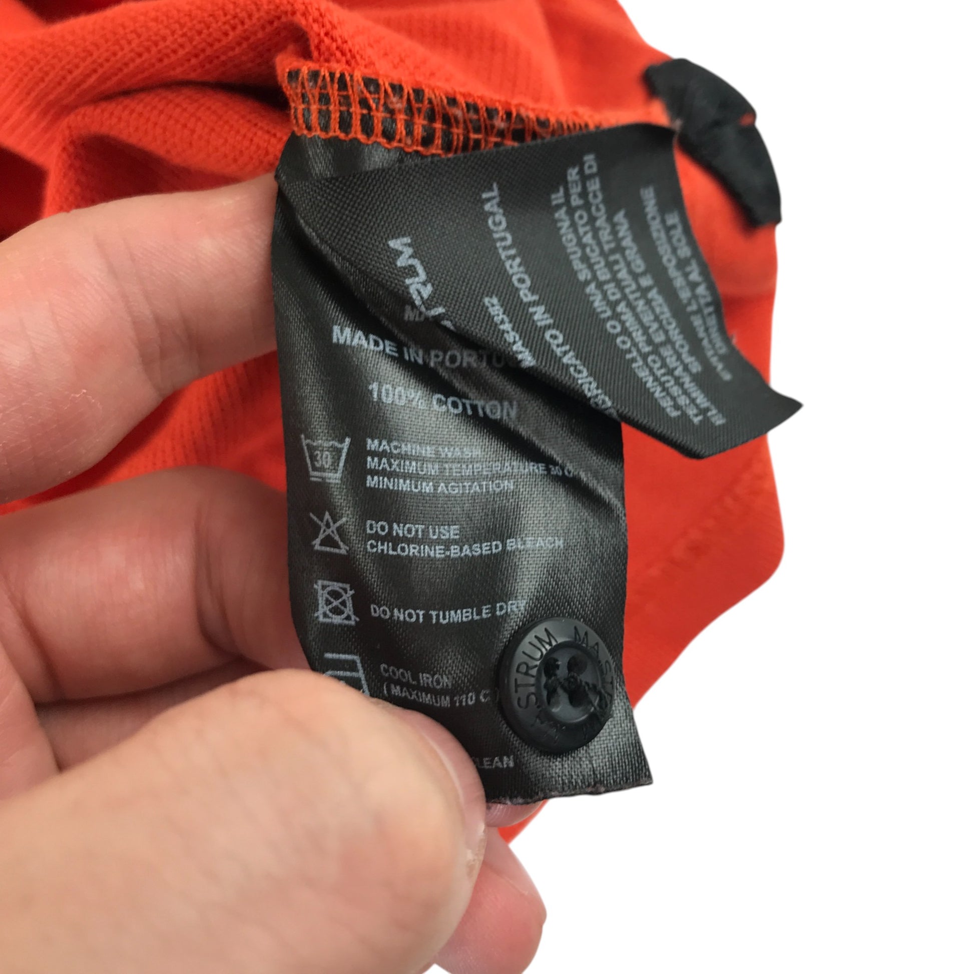 Preloved second hand MA.Strum polo shirt men's S orange plain with white logo cotton