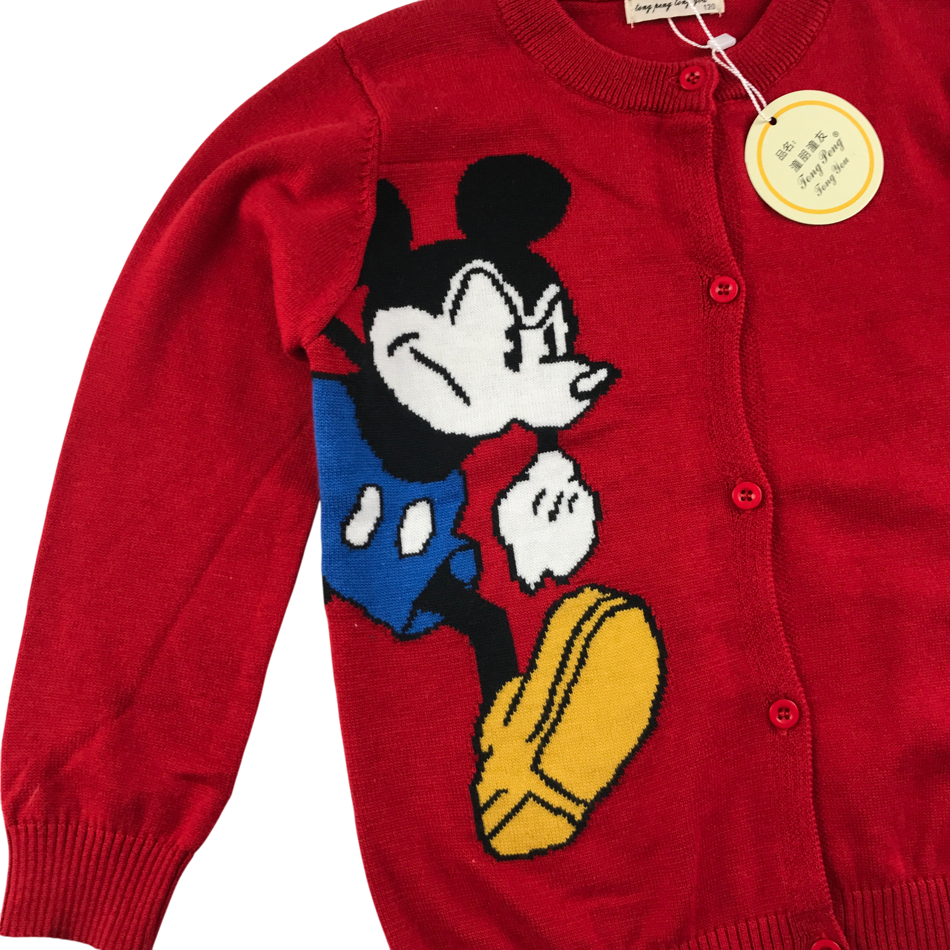 Tong Peng Cardigan 6-7 years Red Knit with Disney Mickey Mouse Pattern Cotton