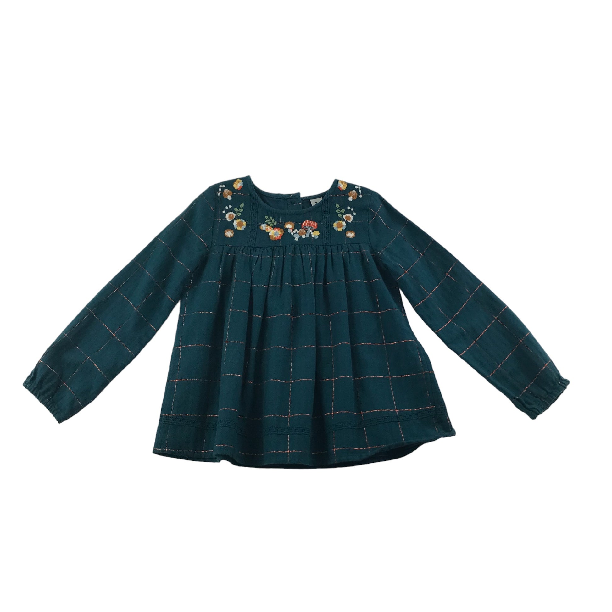 Tu Blouse Age 4 Teal Turquoise embroidered Neckline