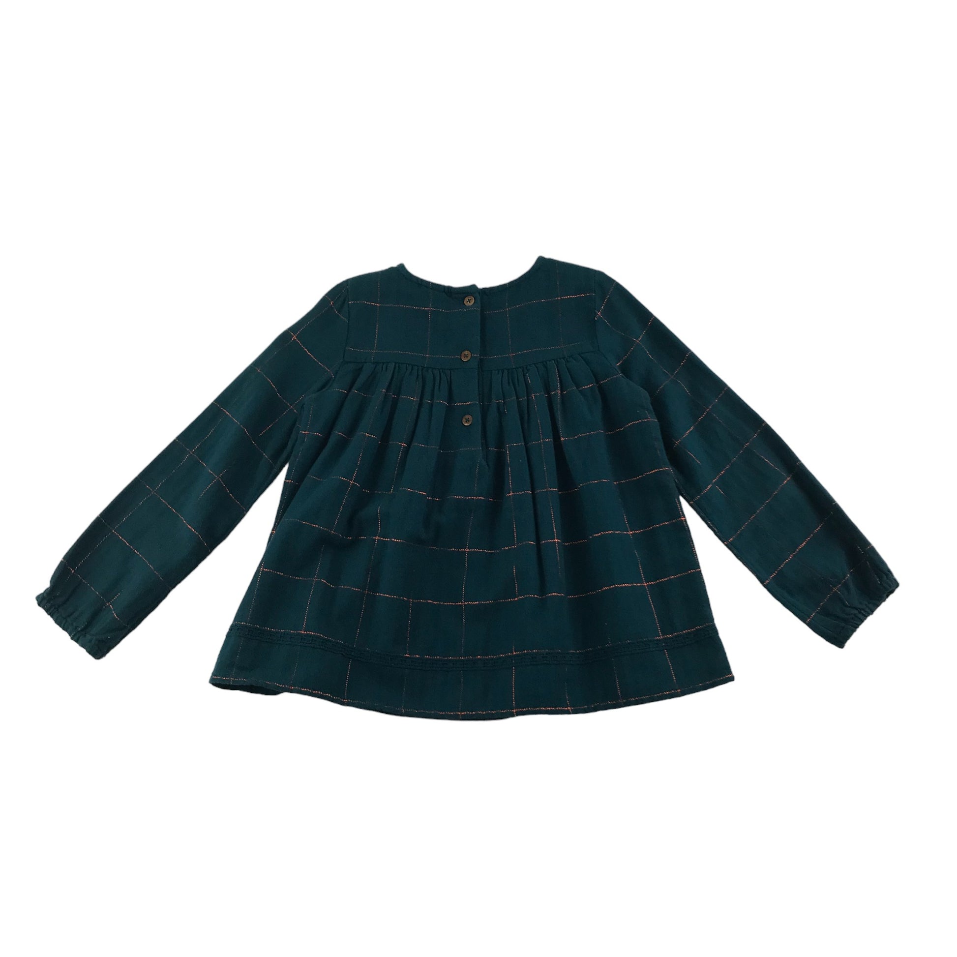 Preloved second-hand Tu Blouse Age 4 Teal Turquoise embroidered Neckline
